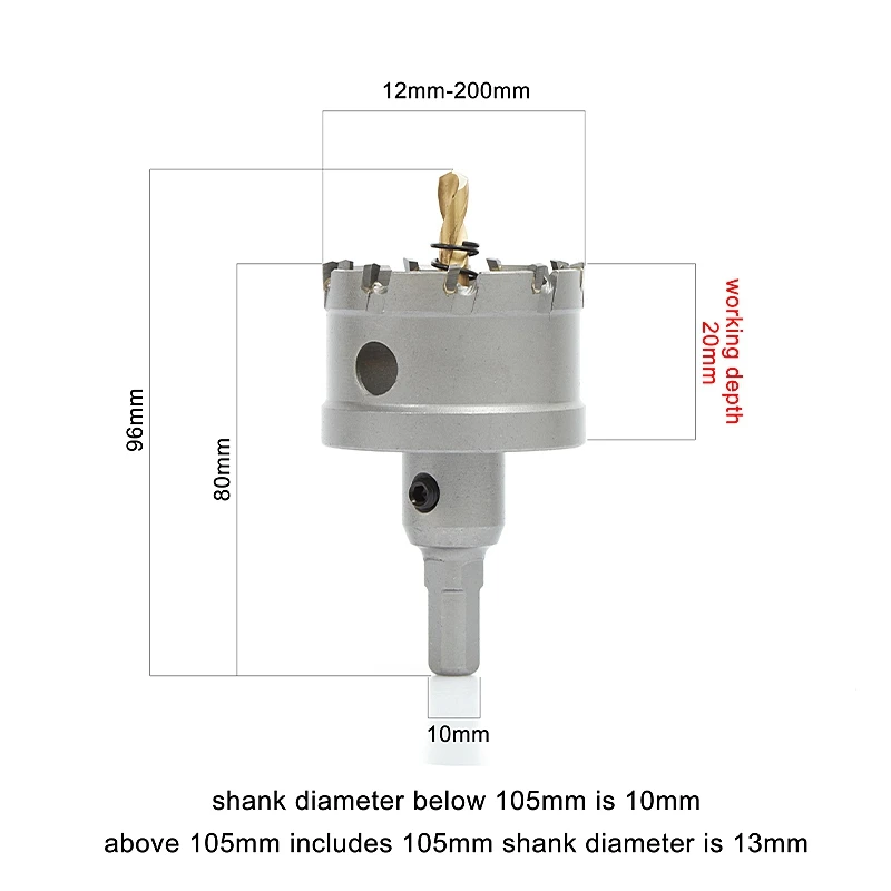Название продукта: кольцевая пила из сплава TCTСпецификация: 12-200 ммМатериал: YG10X карбид вольфрамаМатериал корпуса: углеродистая сталь 45 #Машина: электрическая дрель/Скамья дрельРабочая глубина: 25 ммПрименимые материалы: нержавеющая сталь менее 4 мм, алюминиевый сплав, железо, Угловое железо, чугун менее 20 ммМеры предосторожности:1. Проверьте, затягивается ли центральная дрель, включите машину и проверьте концентрацию кольцевой пилы. При сверлении поместите отверстие пилы перпендикулярно металлу, в противном случае сплав легко отвалится. Лучше всего использовать режущую жидкость для охлаждения толстого металла2. Пожалуйста, следуйте таблице скорости бурения при сверлении, в противном случае легко повредить отверстие пилы3. При использовании ручного сверла убедитесь, что отверстие пилы перпендикулярно металлу, лучше использовать сверло скамейки для работы