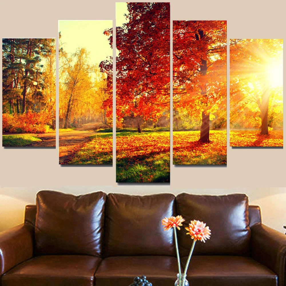 5 шт., фотообои, закат, пейзаж, живопись, спальня, современный осенний пейзаж, картина, HD лес, украшение для дома icon star icon star icon star icon star icon star