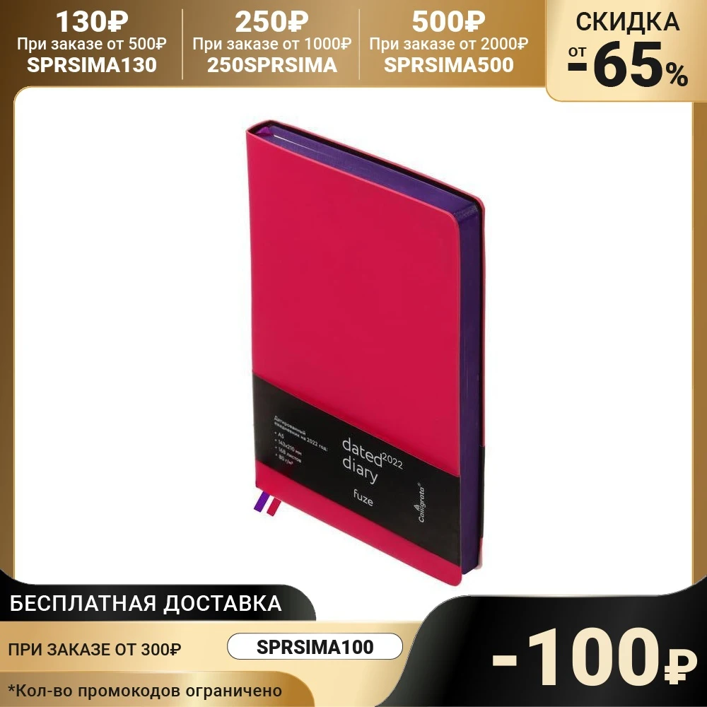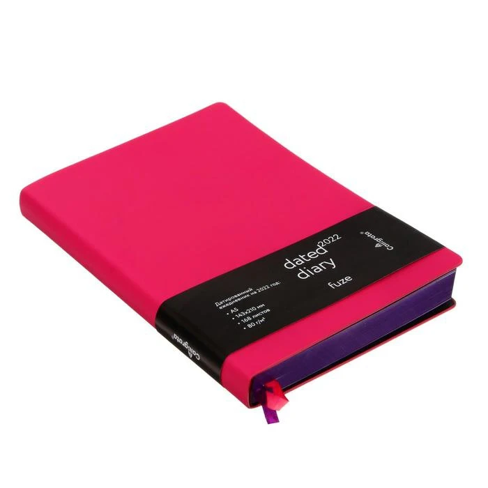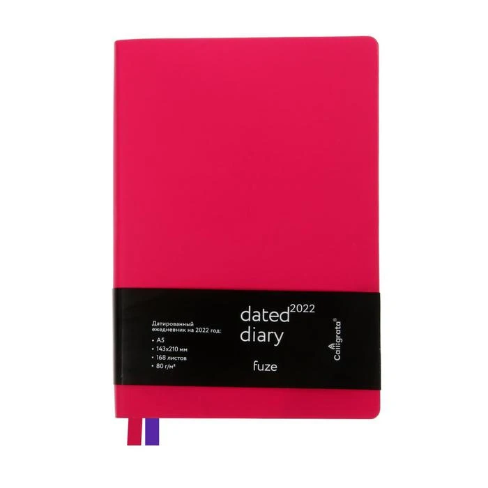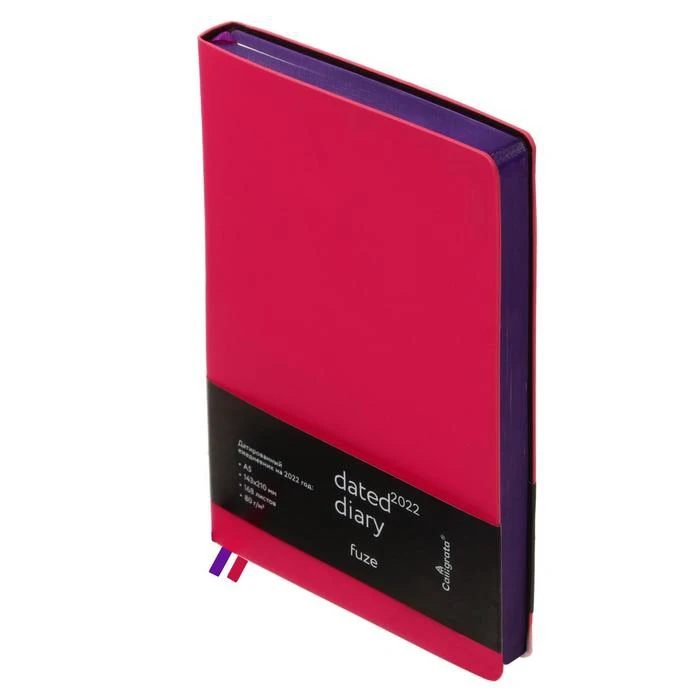 Ежедневник датированный 2022 год, формат A5, 168 листов в линейку, кожзам фуксия Fuze, фиолетовый срез, 2 ляссе, перфорированн
