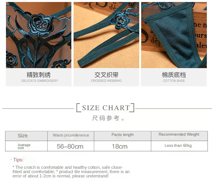 Сексуальные кружевные вышитые женские трусики, T-образные прозрачны...