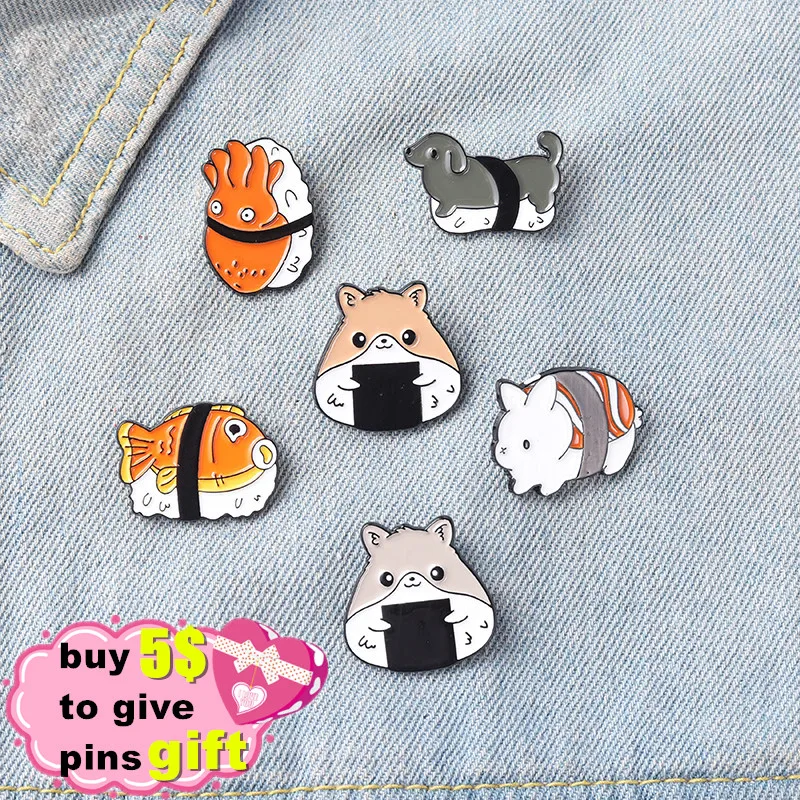 Эмалированная булавка в виде суши, милые забавные броши в виде еды, Значки для сумки, шляпы, рюкзака, аксессуары для девочек и мальчиков, оптовая продажа ювелирных изделий
