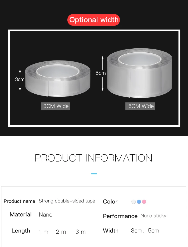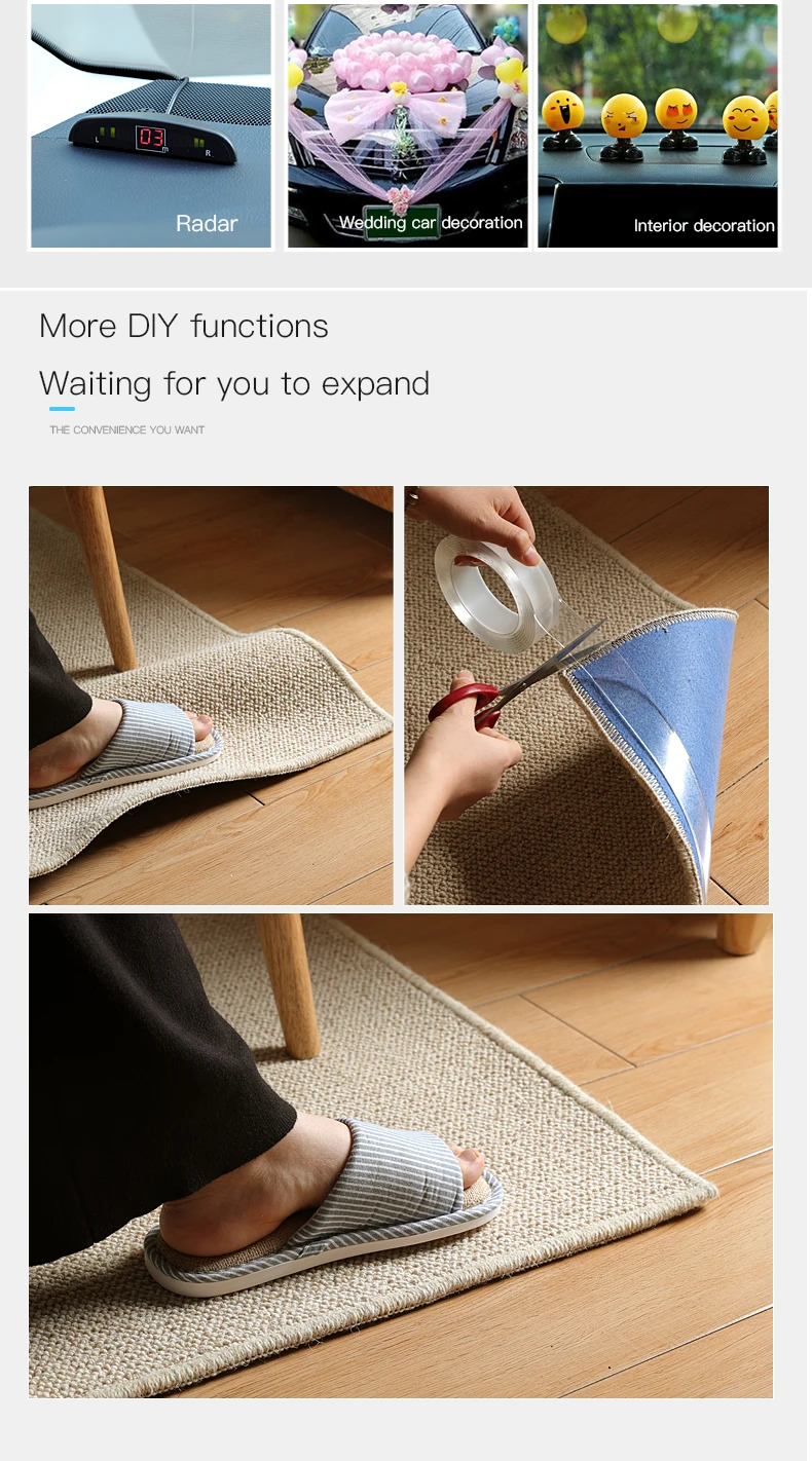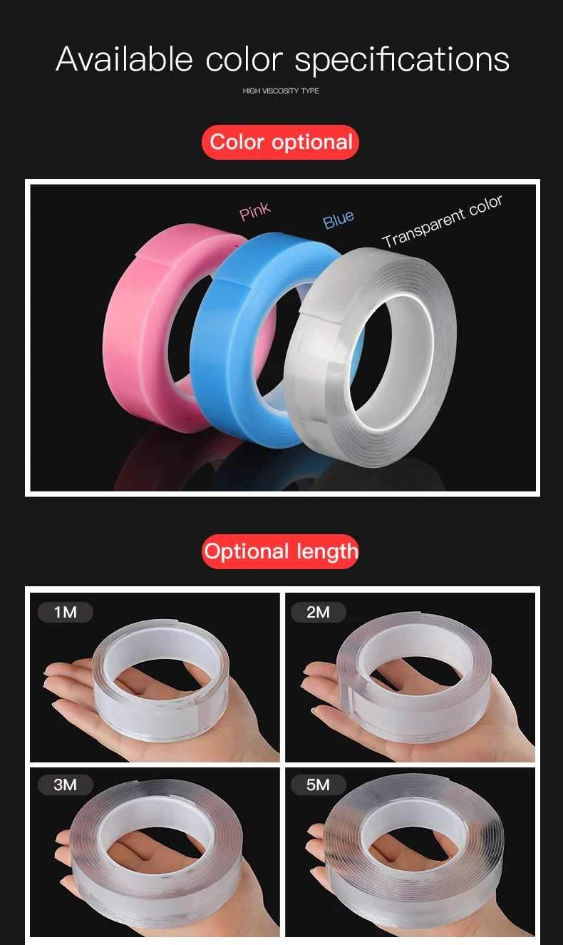 Двухсторонняя лента 235 м, нано-лента, Многоразовые водонепроницаемые настенные Стикеры, не оставляющие следов и моющиеся самоклеящиеся прозрачные ленты