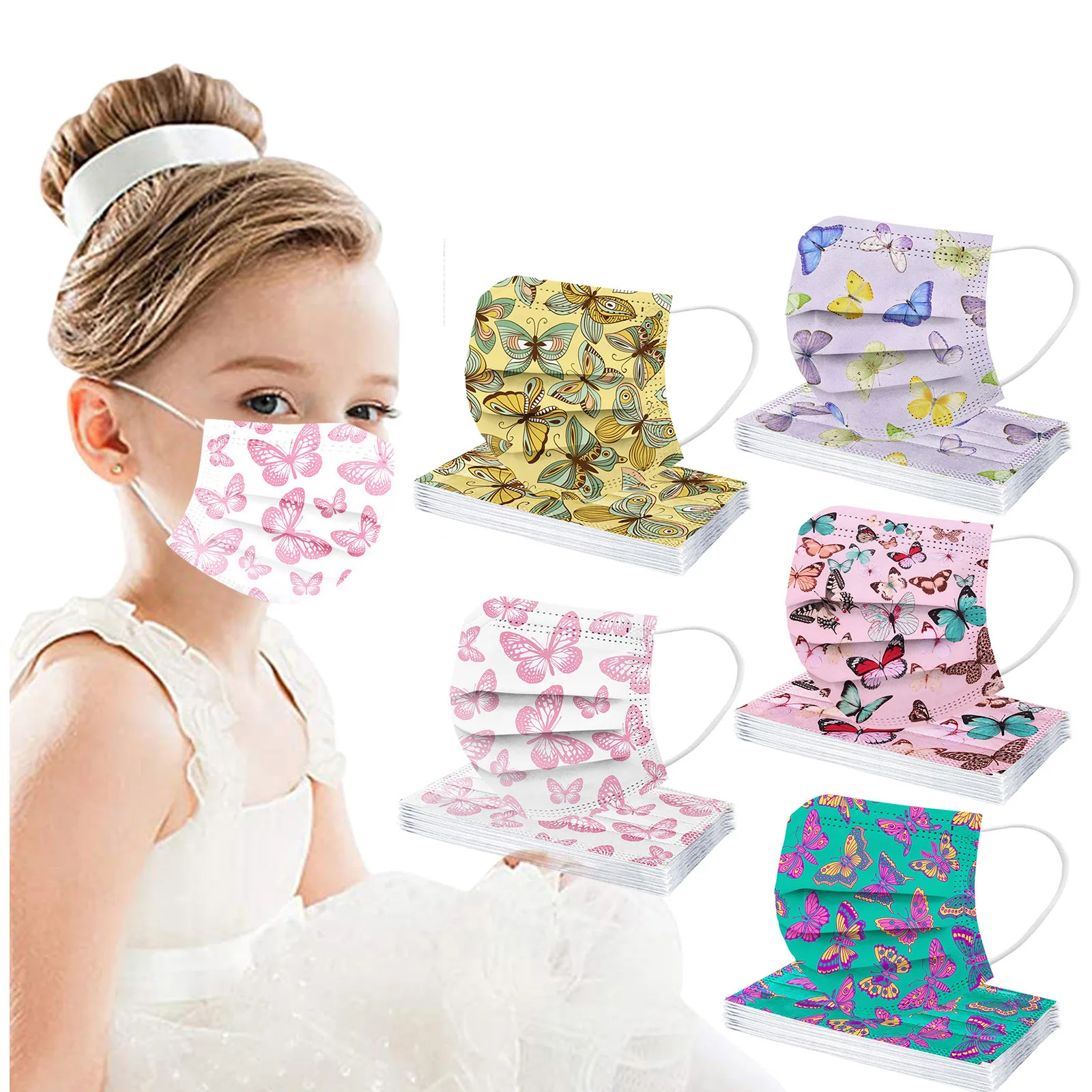 10 шт., детская трехслойная одноразовая маска с принтом бабочек