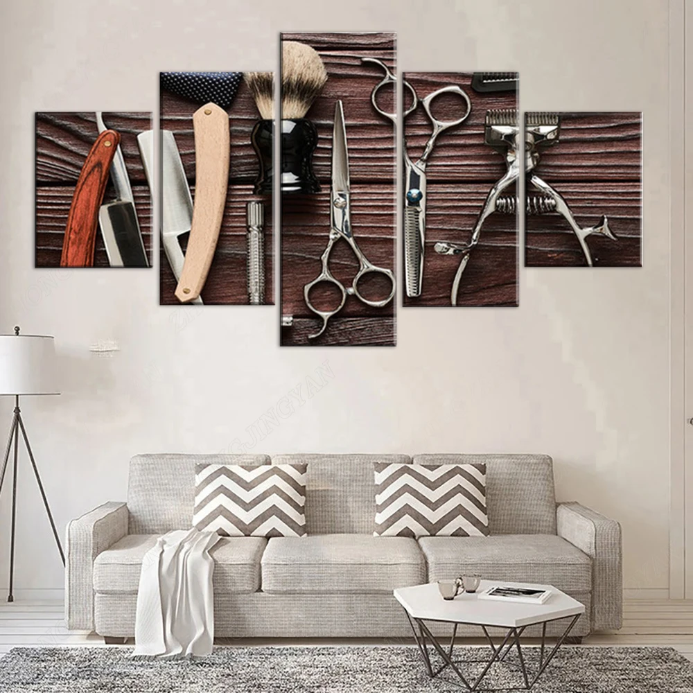 Современный парикмахерский инструмент с узором 5 панелей Холст плак...