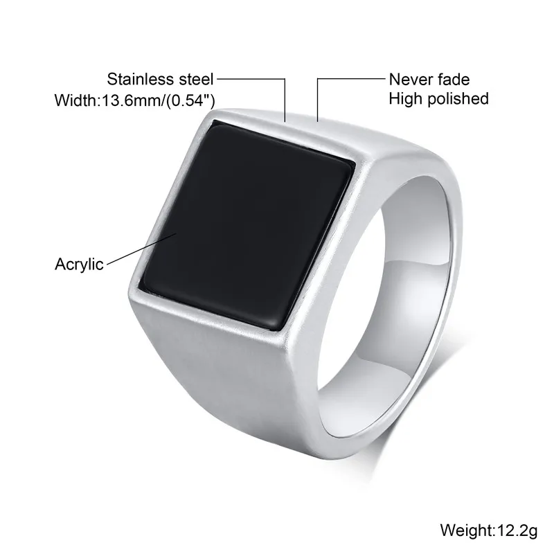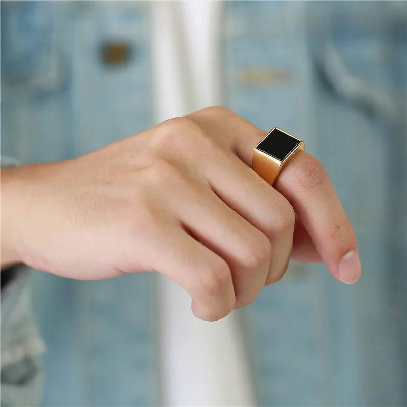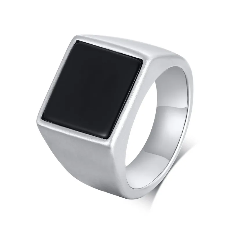 Кольцо для мужчин, квадратное кольцо из нержавеющей стали, черные э...