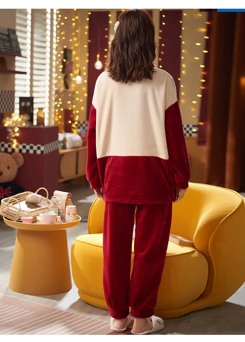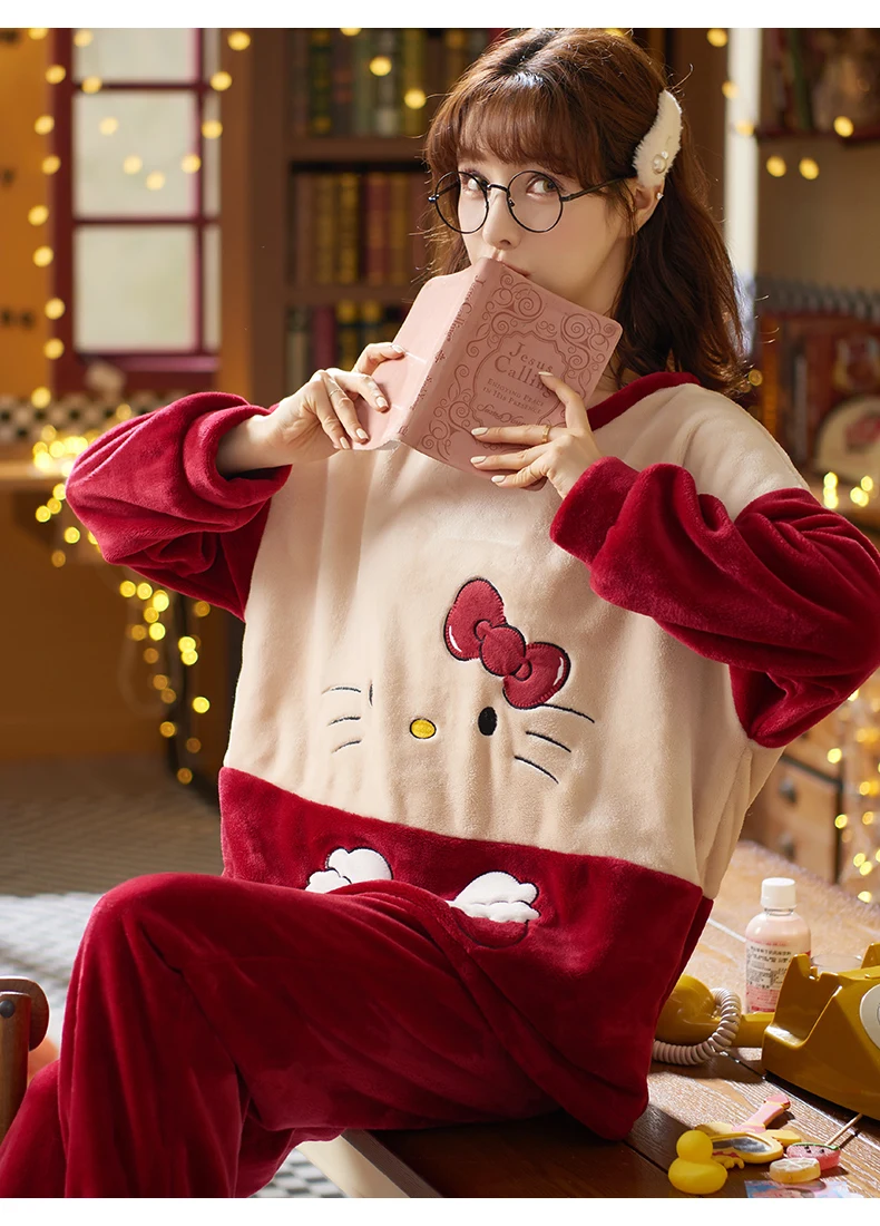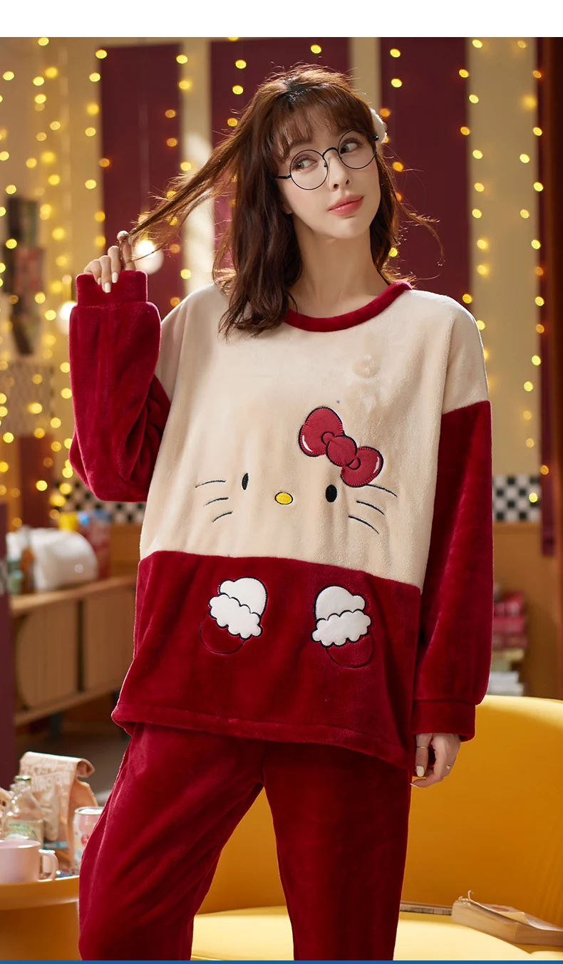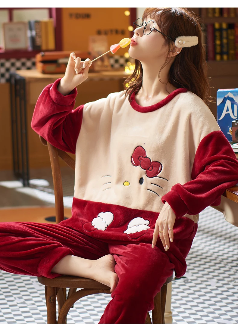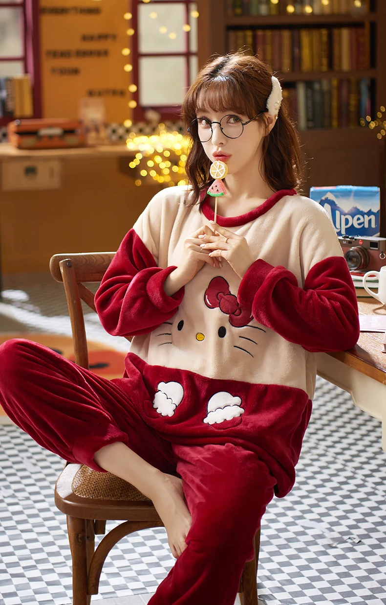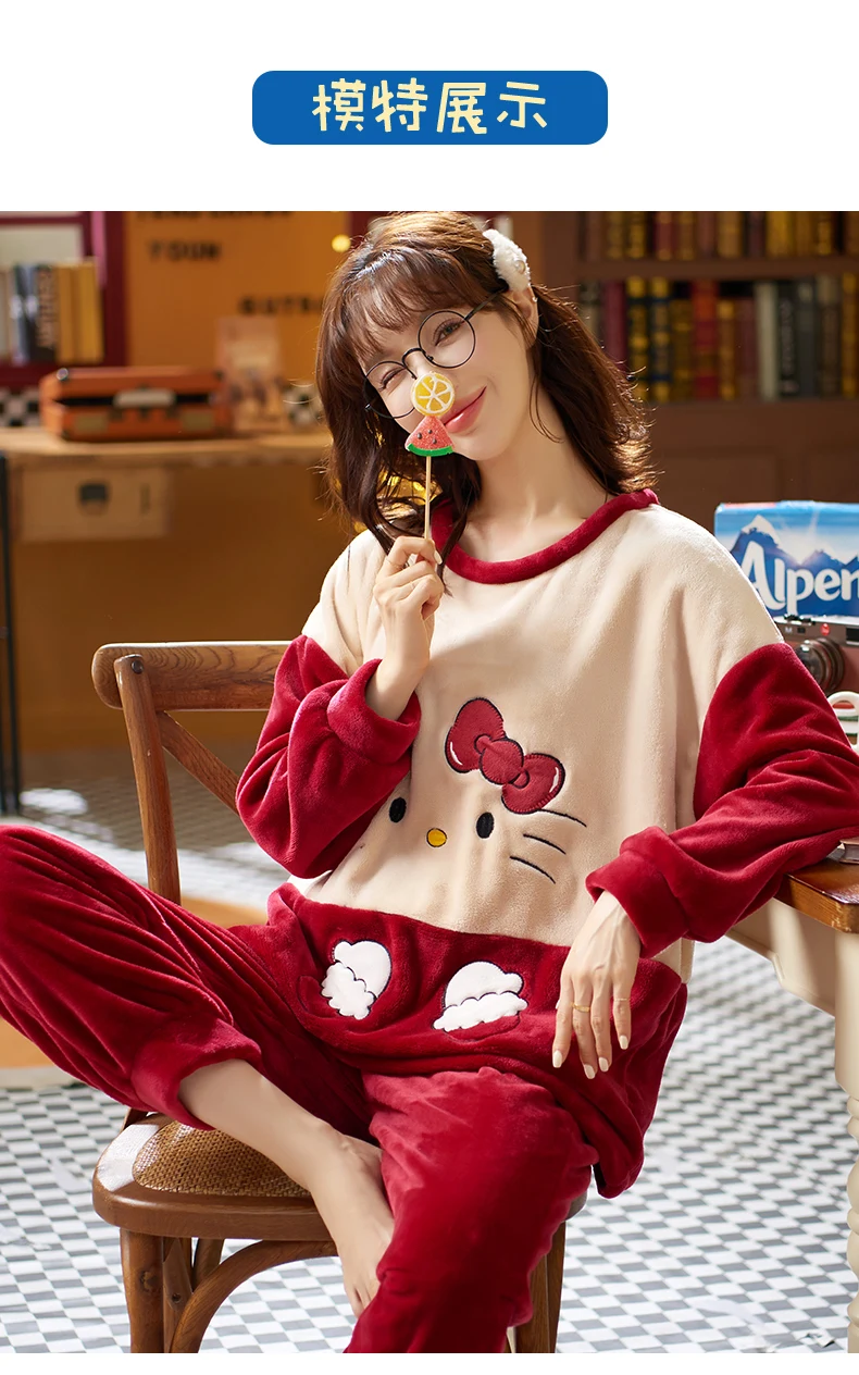 2021 пижамные комплекты с толстыми рукавами, одежда для сна из мультфильма, тонкая осенне-зимняя теплая фланелевая Женская Фланелевая пижама, длинный комплект из кораллового бархата