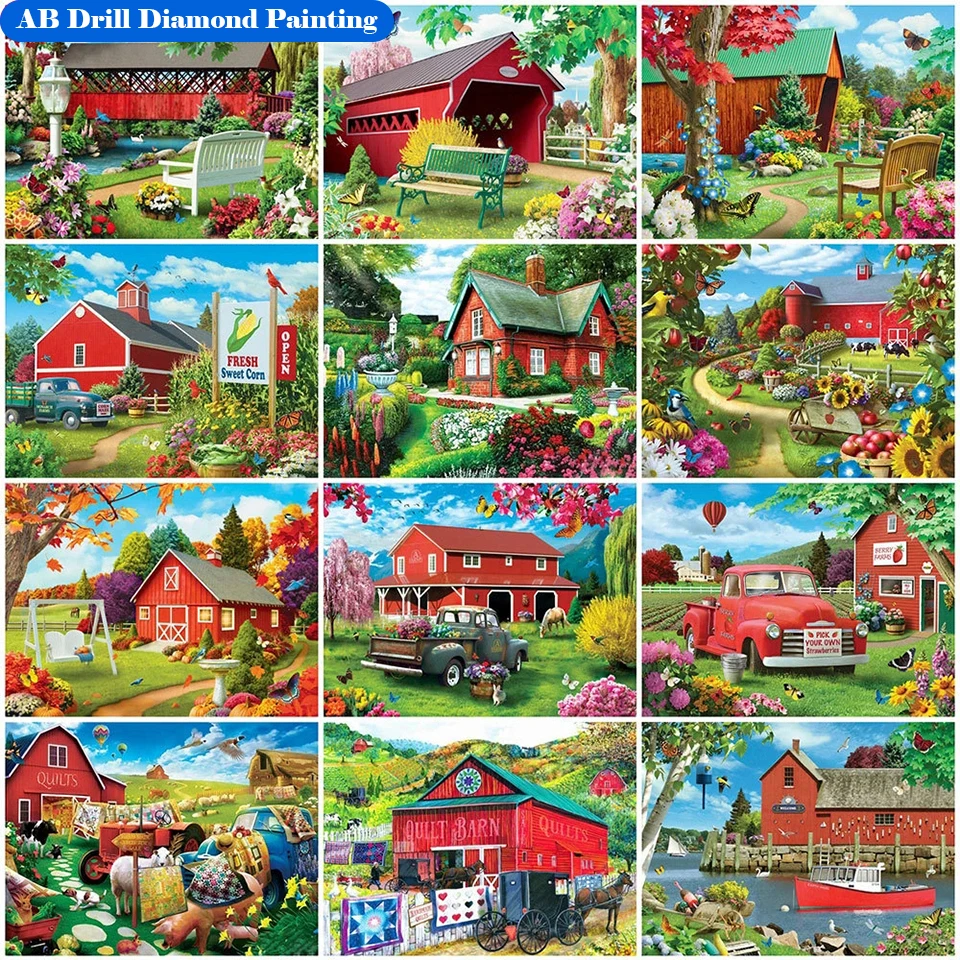 Алмазная живопись AB, садовый пейзаж, полноразмернаякруглая 5D картина для рукоделия, искусственный пейзаж, вышивка крестиком, мозаика, картина для рукоделия