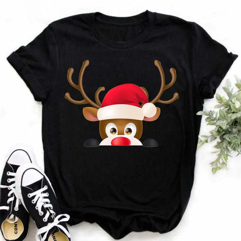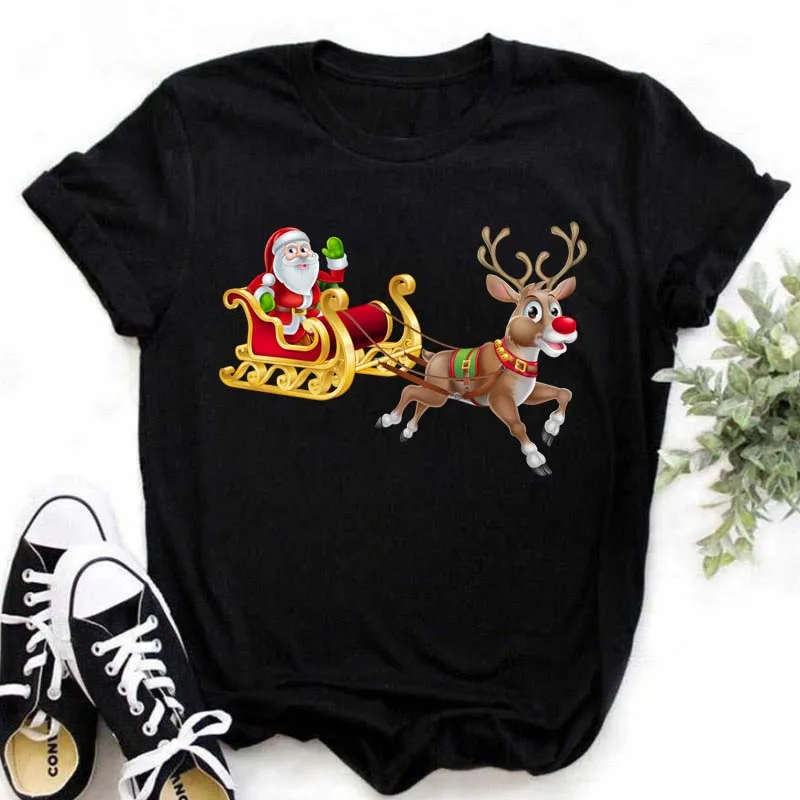 Maycaur Kawaii Рождественский олень женские футболки с принтом девушки Харадзюку милый Санта Клаус топы подходят для всех сезонов женские футболки
