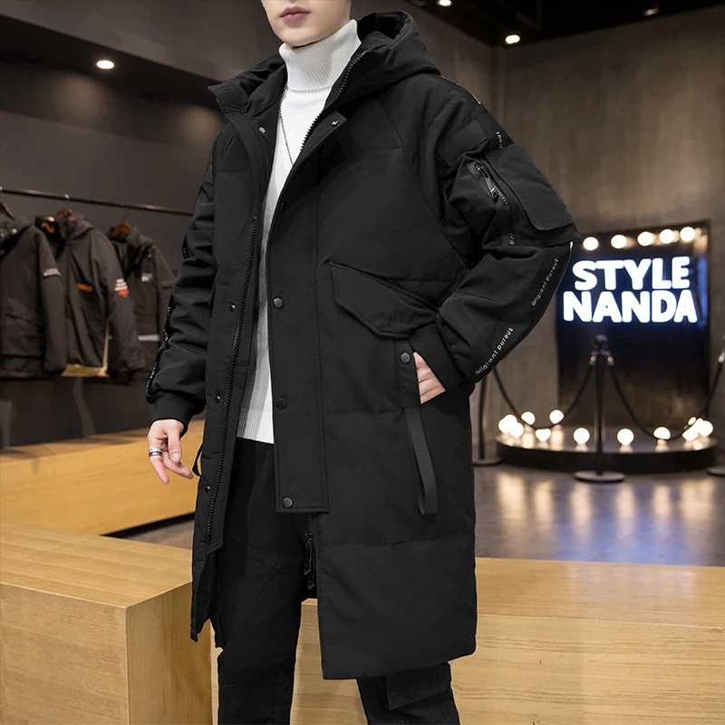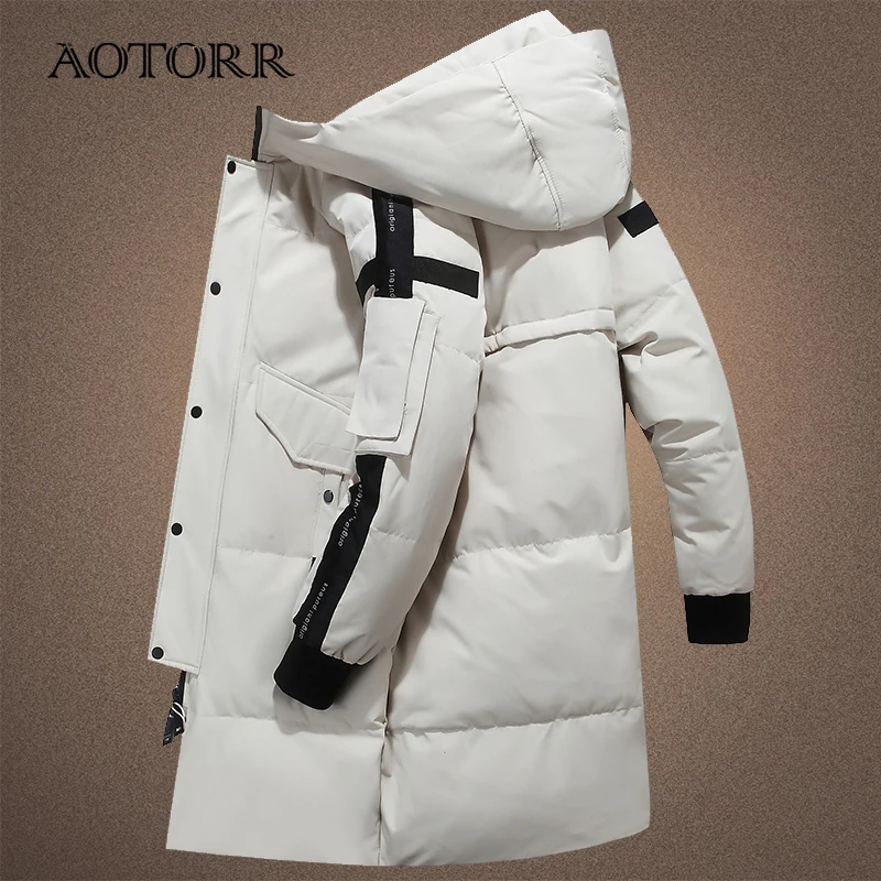 Мужской длинный пуховик с капюшоном, теплый повседневный пуховик на белом утином пуху с защитой от ветра, размеры до 3XL, Осень-зима 2021