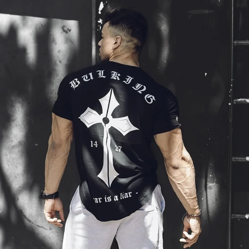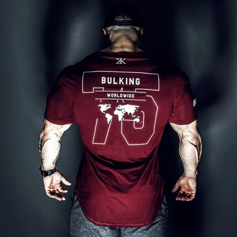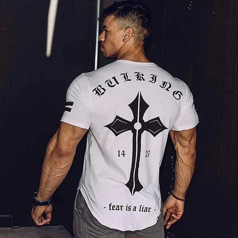 Мужская спортивная хлопковая футболка для бега, фитнеса, бодибилдинга, фитнеса, бодибилдинга, тонкая футболка с коротким рукавом, мужская тренировочная футболка для тренировок, топы, одежда