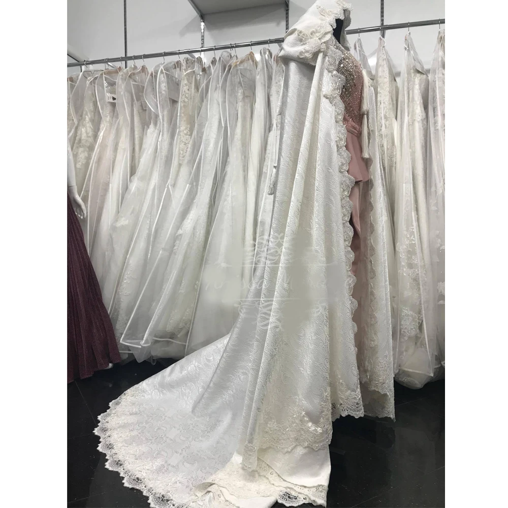 Женская свадебная накидка с кружевной аппликацией, Длинная атласная накидка невесты с капюшоном, Элегантная модная свадебная куртка, 2021