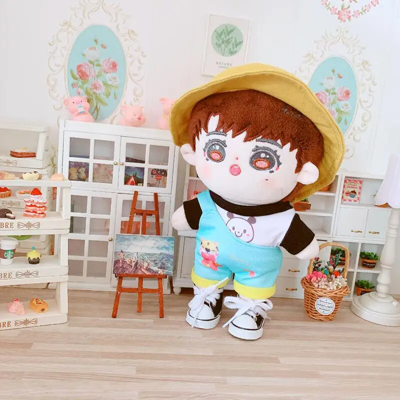 Милый комбинезон + шляпа + футболка в полоску + Топ в виде льва панды и кролика + холщовая обувь, коллекция аксессуаров для русской куклы ручной работы 20 см
