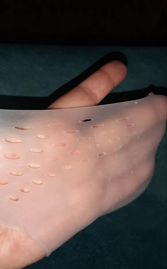 очень довольна,на ощупь супер,тянутся превосходно,к коже прилегают отлично,не скатываются и не слазят,так что пяточки полностью защищены от мозолей...РЕКОМЕНДУЮ,пришли быстро,как на картинке...