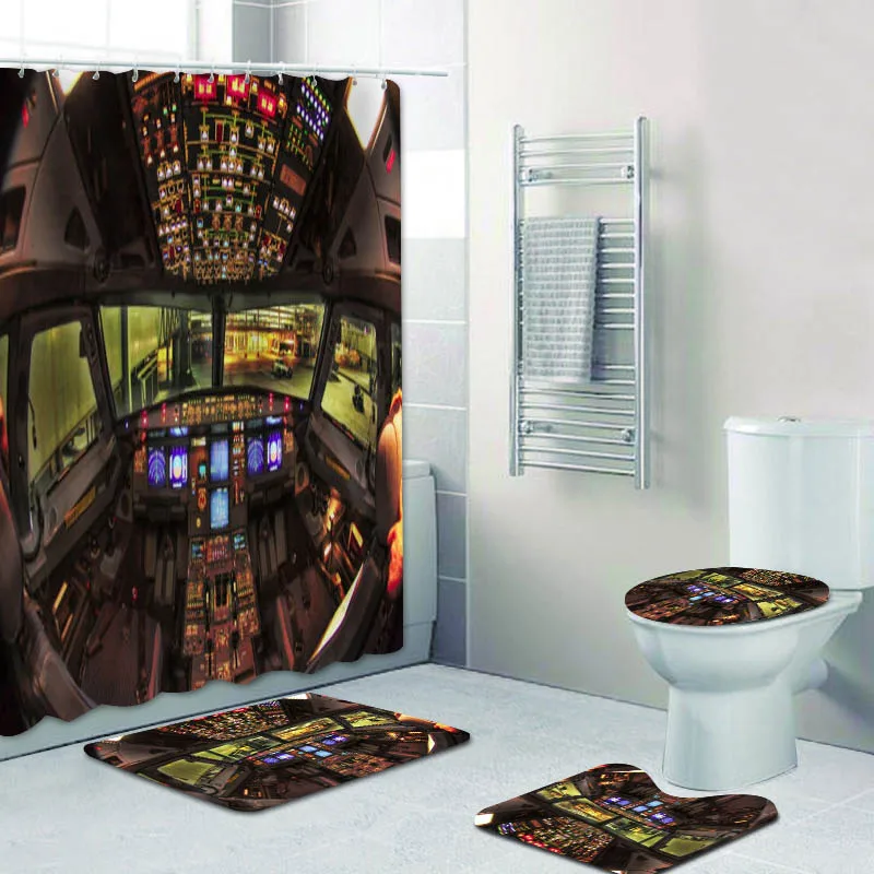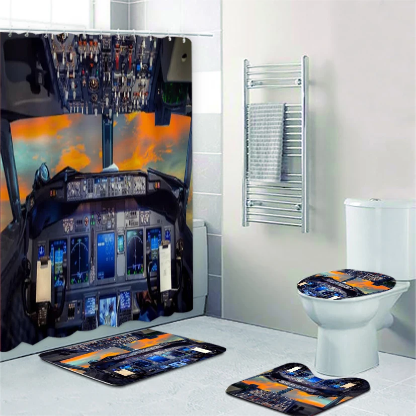 Современные технологии самолет в кабине самолета панель для душа занавеска и ванна коврик набор инструмент управления полетом ванная комната коврики Декор