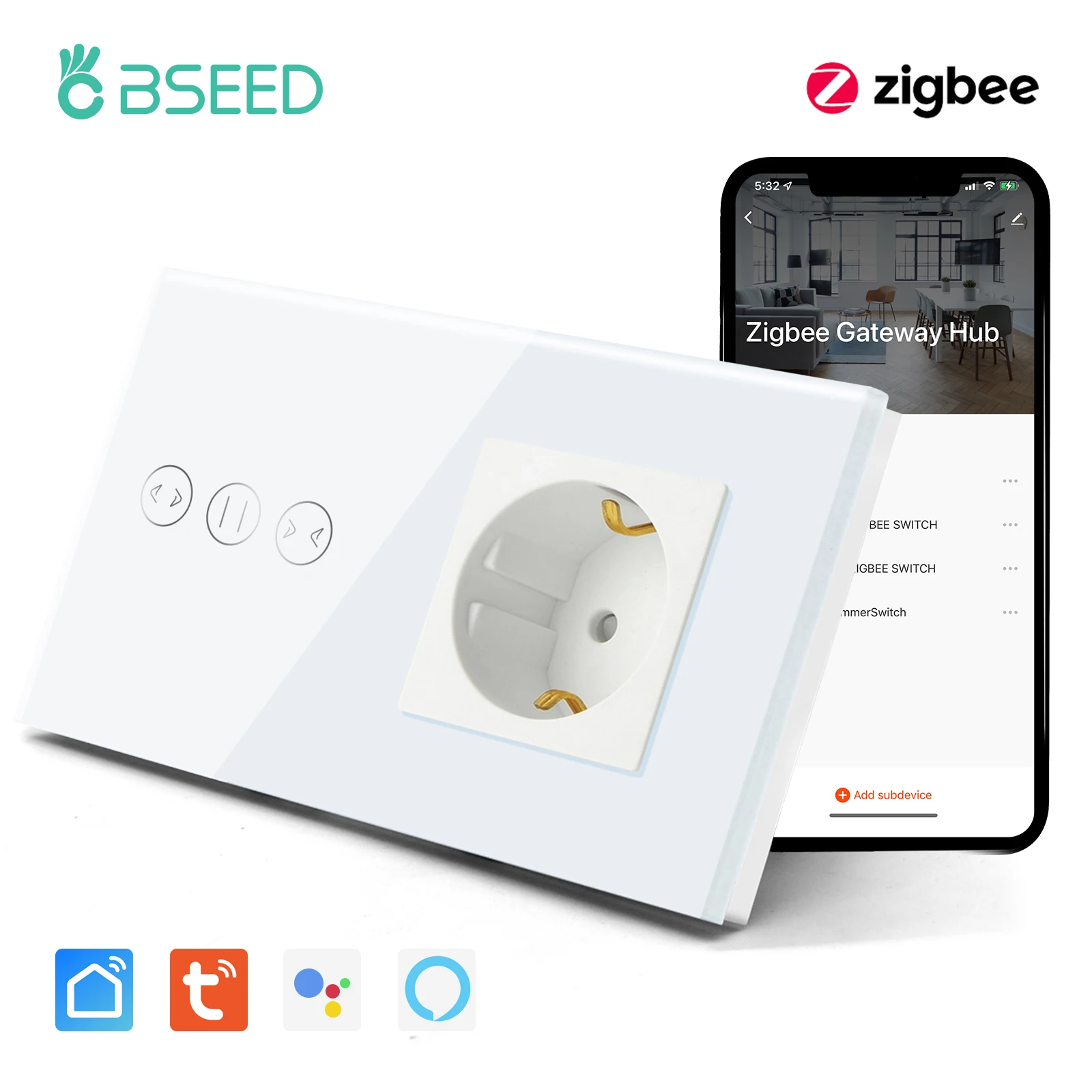 Переключатель для штор BSEED Tuya Zigbee с поддержкой Wi-Fi, с электроприводом