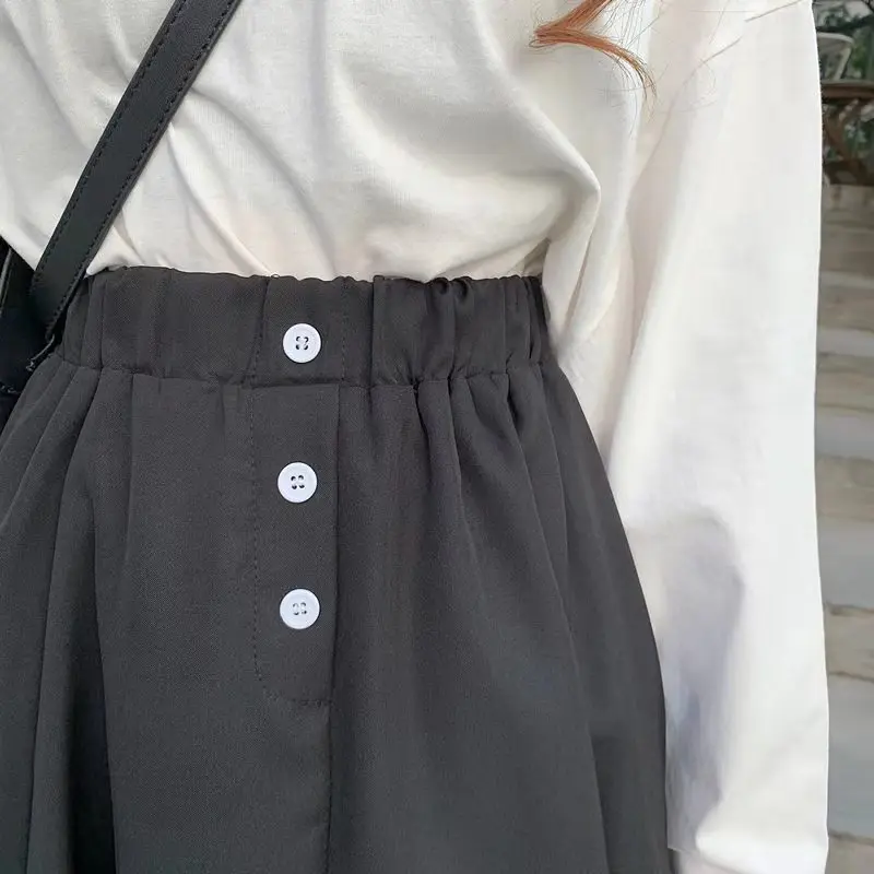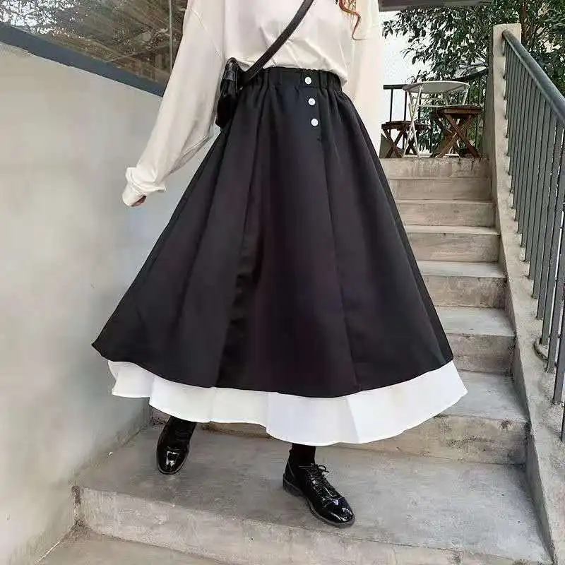 Женская юбка средней длины в Корейском стиле; Коллекция 2021 года; Сезон весна-осень; Короткая юбка в стиле ретро с высокой талией в стиле Академии; Черная и белая длинная юбка трапециевидной формы