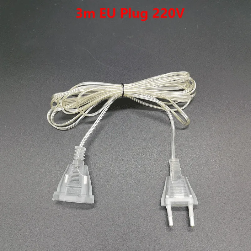 Удлинитель провода с вилкой 3 м, USBEUUS разъем для светодиодсветильник лент, уличная светодиодная гирлянда сделай сам, Рождественский свет для улицы и сада