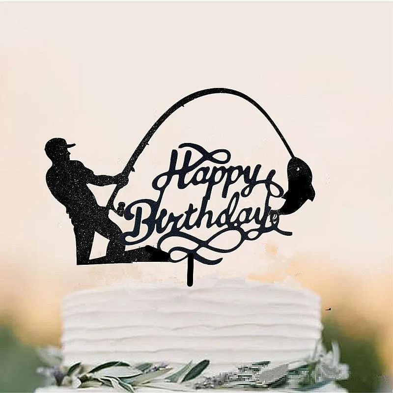 Топпер для торта С Днем Рождения, украшения для вечеринки в честь Дня Рождения, Топпер для рыбалки, товары для вечеринки в честь Дня Рождения рыбака