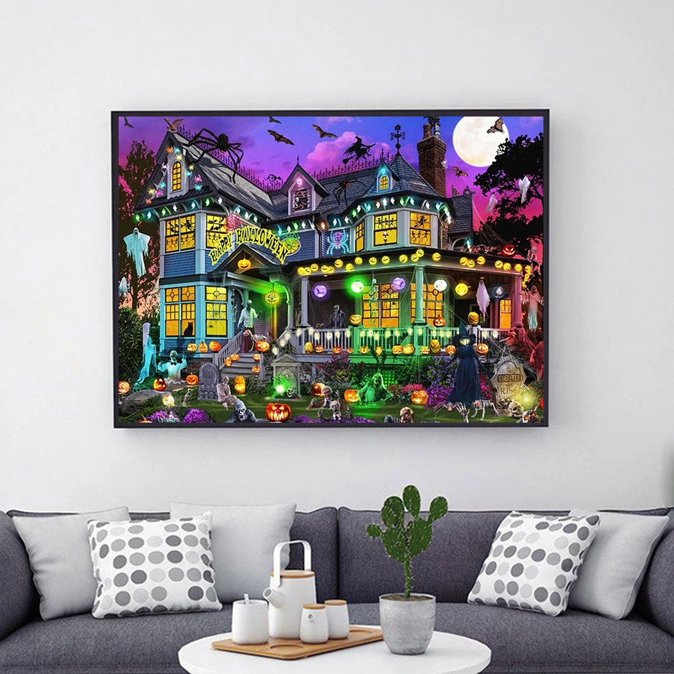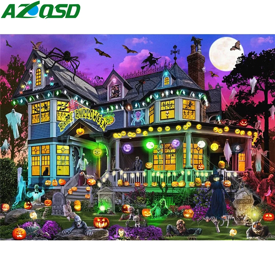 AZQSD Алмазная картина дом фантазия 5d Diy алмазное искусство Хэллоуин Тыква пейзаж Ночная ручная работа искусство домашний декор рукоделие