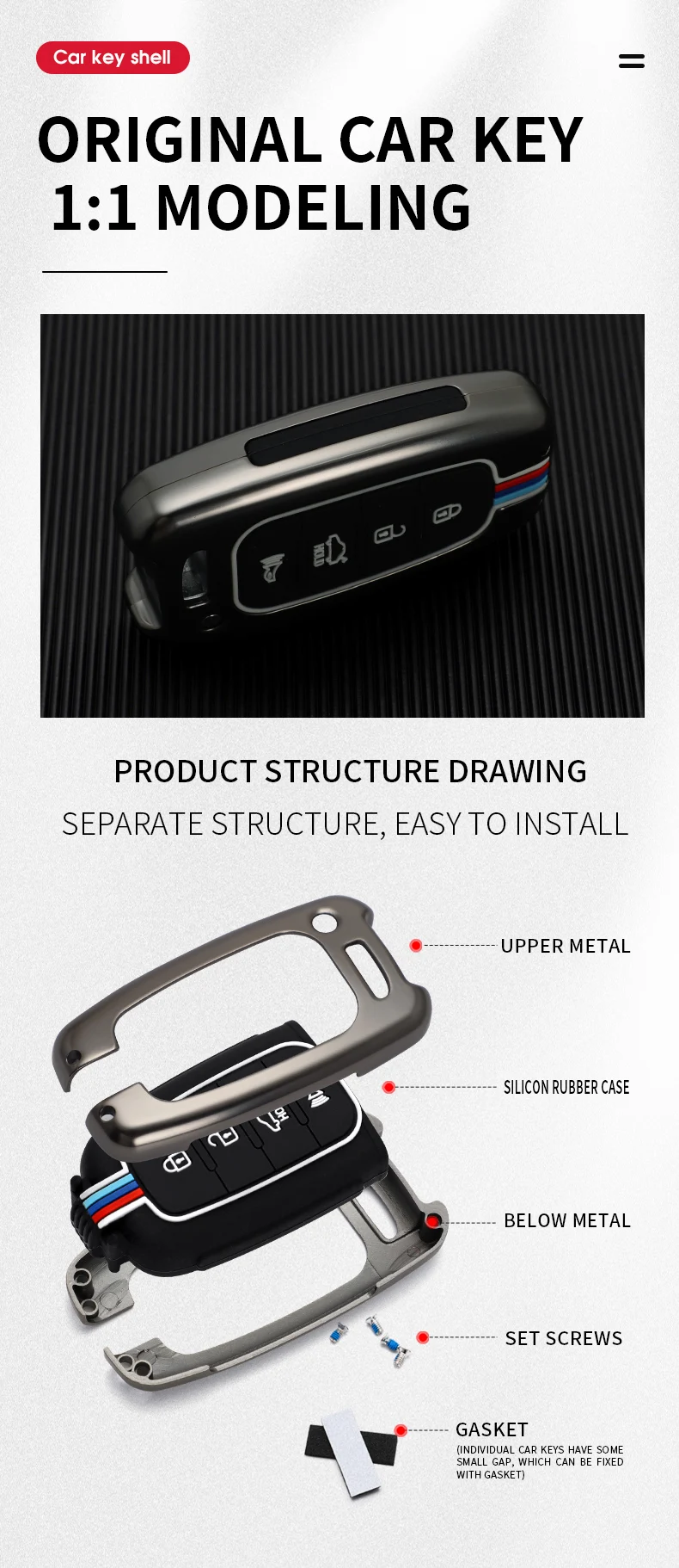 Чехол для ключа из цинкового сплава, подходит для Hyundai Solaris H...