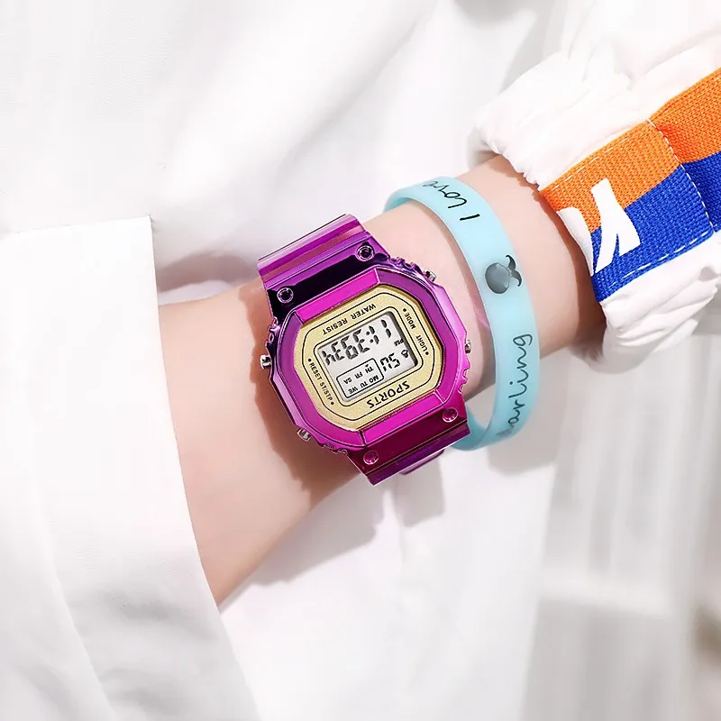 Цветные гальванические маленькие квадратные электронные часы студен...