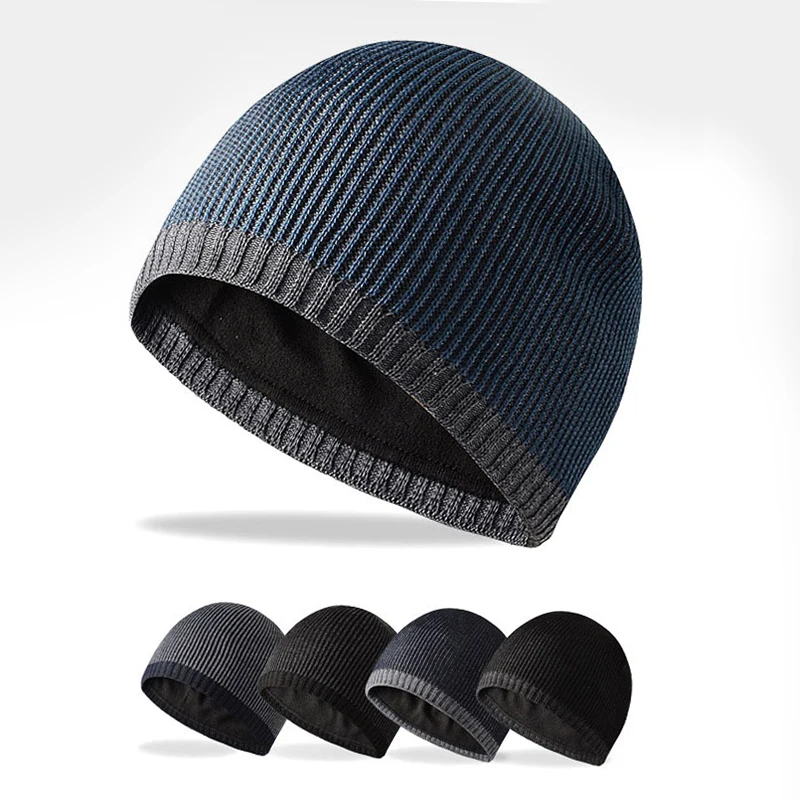 Новая мужская зимняя бархатная плотная теплая вязаная шапка Повседневная шапка с черепом Мужская Удобная мягкая шапка с капюшоном