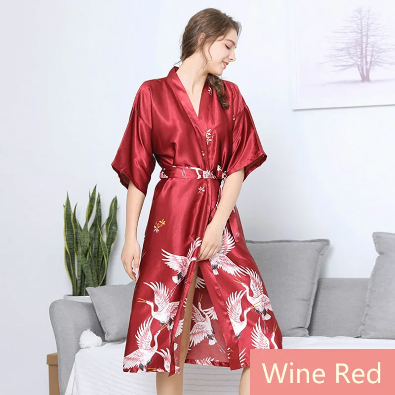 Женский Длинный атласный пикантный халат-кимоно, Шелковый банный ха...