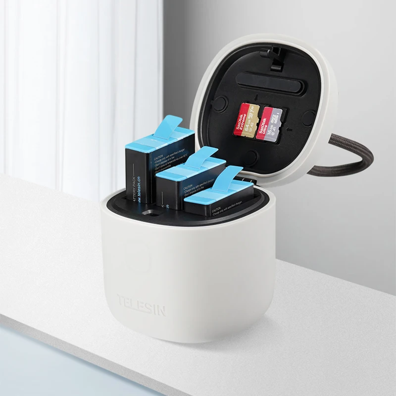 TELESIN 3 способа зарядное устройство 1750mAh батарея для GoPro 10 9 с зарядным устройством TF кардридер Коробка Для Хранения Зарядки для Hero 9 10 аксессуар
