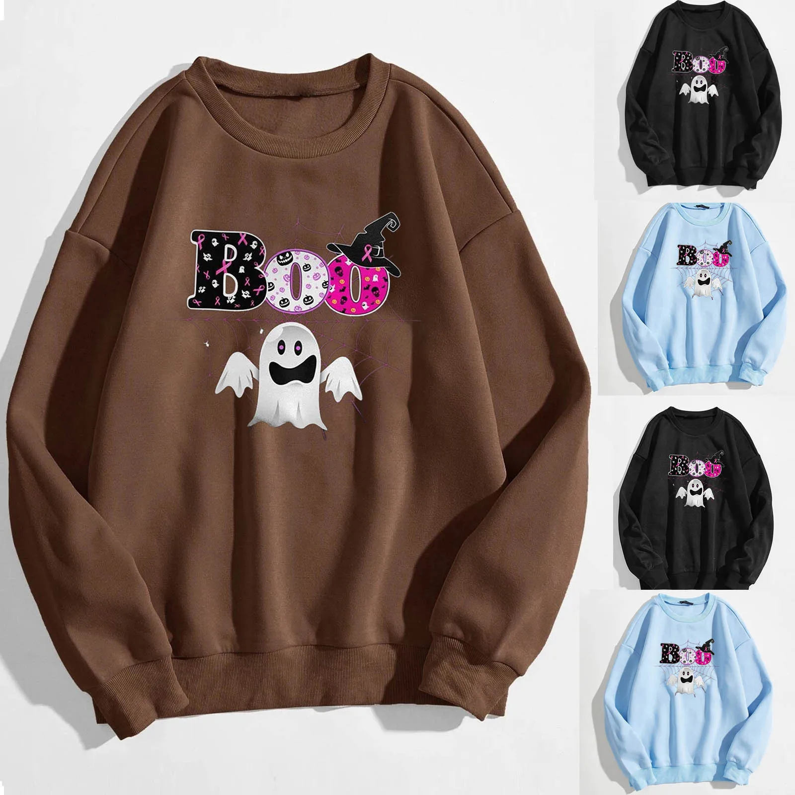 Модные женские толстовки оверсайз с круглым вырезом, повседневные толстовки в стиле Харадзюку, толстовки с капюшоном и длинными рукавами, Хэллоуин принт