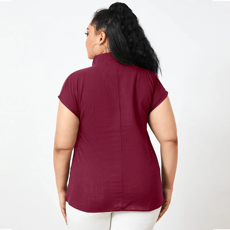 Размера плюс повседневные свободные Однотонные блузки Celmia для женщин 2021, модные летние туники с коротким рукавом, топы, винтажные хлопковые Блузы на пуговицах