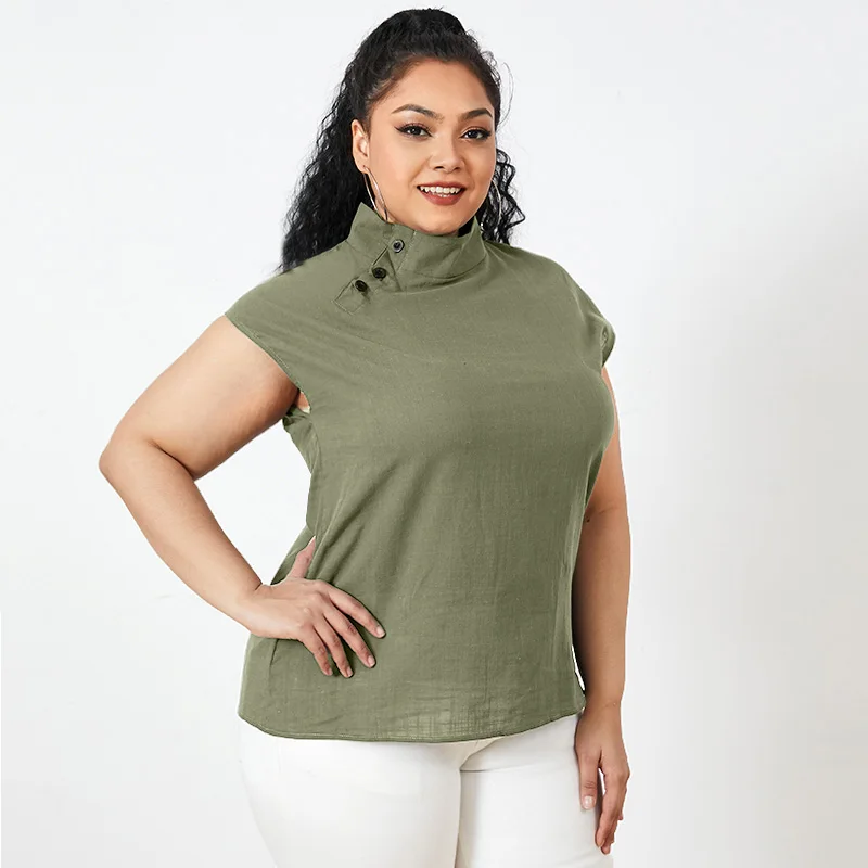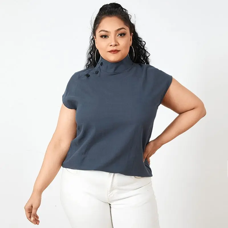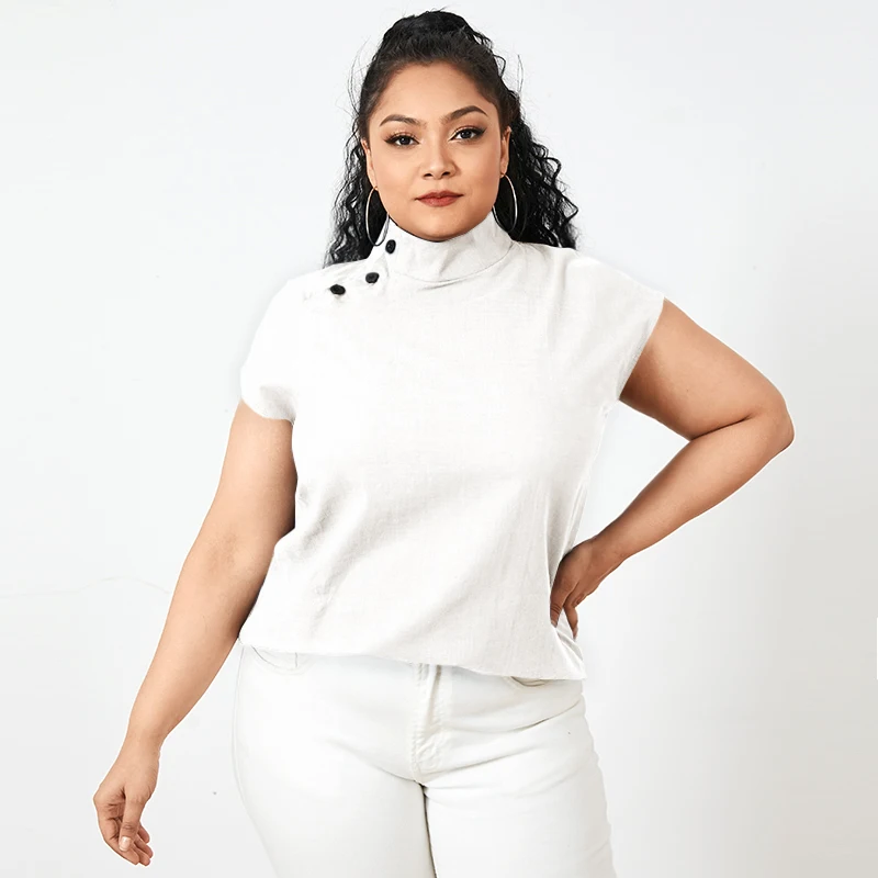 Блузка женская хлопковая, с коротким рукавом, на пуговицах, лето 2021