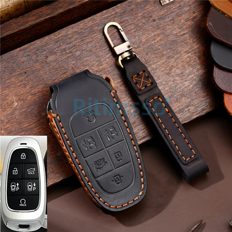 Новинка 2022 кожаный чехол для ключа для Hyundai Solaris Sonata Hybrid NEXO NX4 новый Grand Santa Fe Tucson 2021 2022 бесключевой доступ