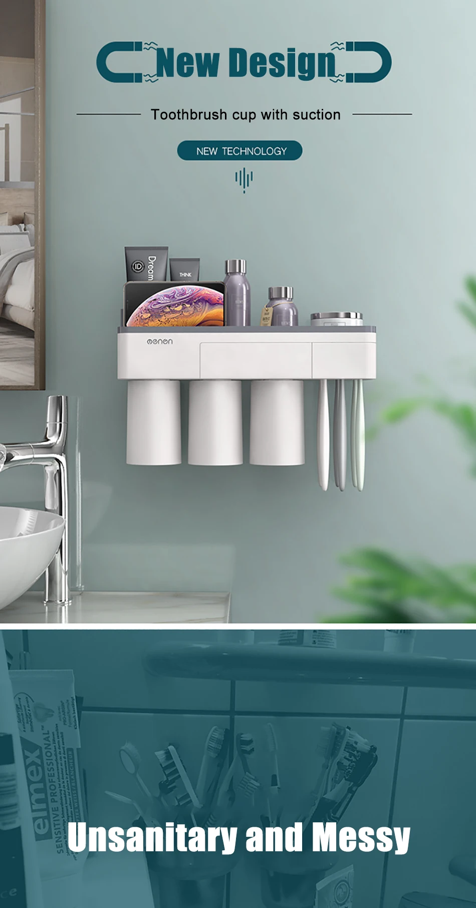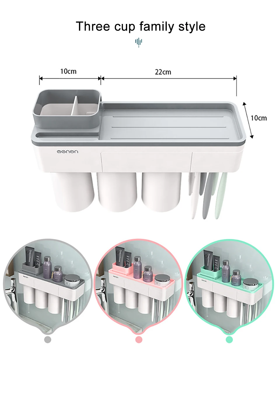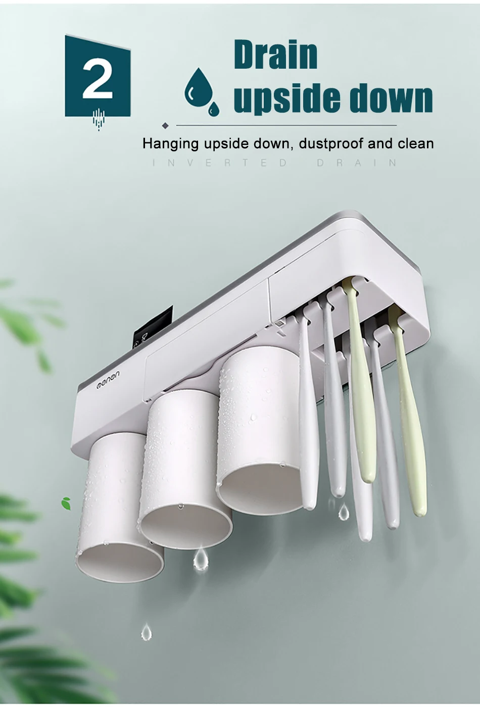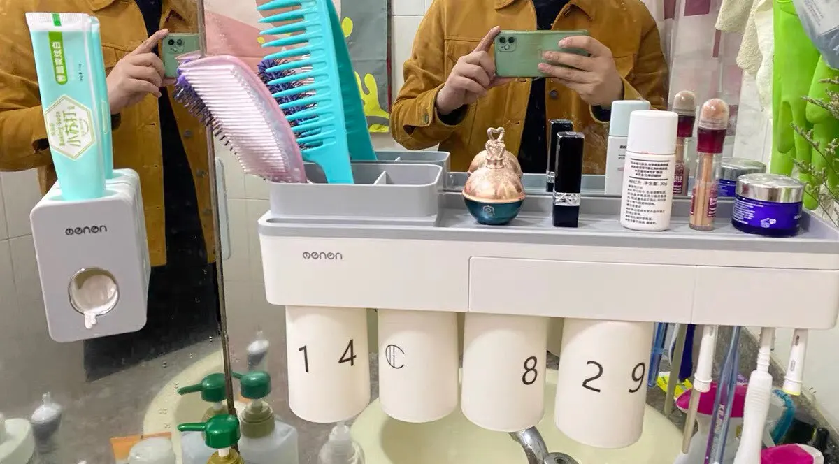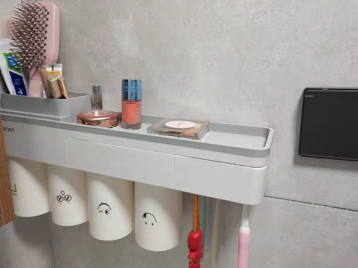 2. Лоток для хранения на верхней части держателя зубной щетки является мульти-сеткой, его можно поместить зубная паста, мыло, расчески, косметика, бритва и т. Д.