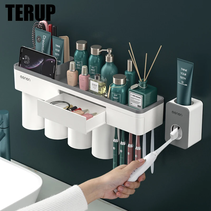 Держатель зубной щетки TERUP с сильной адсорбцией, магнитная чашка, водонепроницаемая, Бесплатная Пробивка, стеллаж для хранения для дома, аксессуары для ванной комнаты, наборы