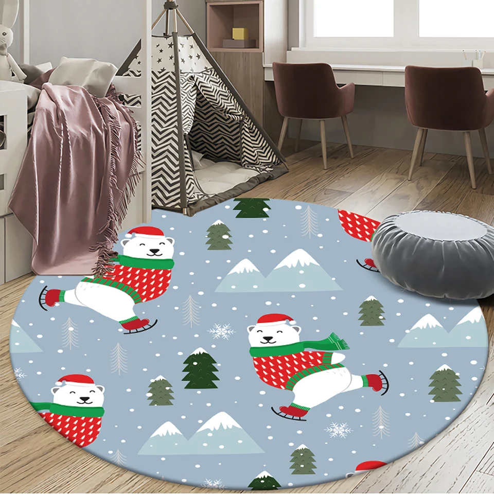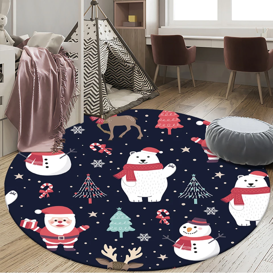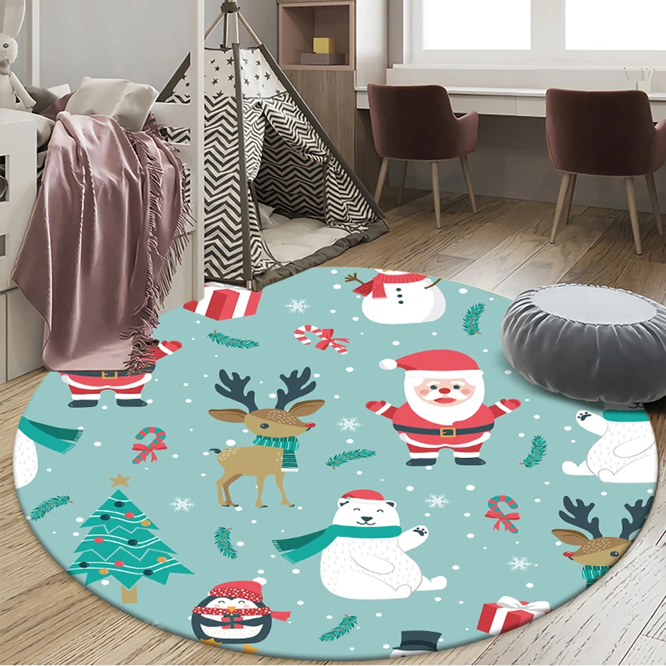 Милый рождественский коврик с героями мультфильмов, коврики для украшения вечеринки в спальне, мягкие детские круглые коврики Kawaii, нескользящий коврик для стула, защита для пола