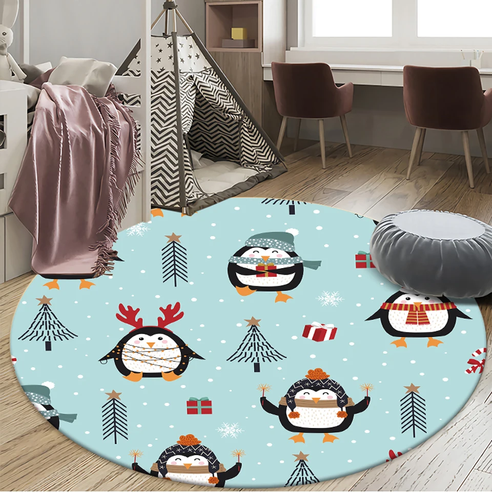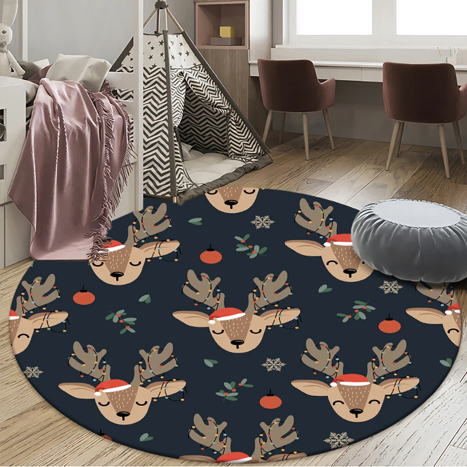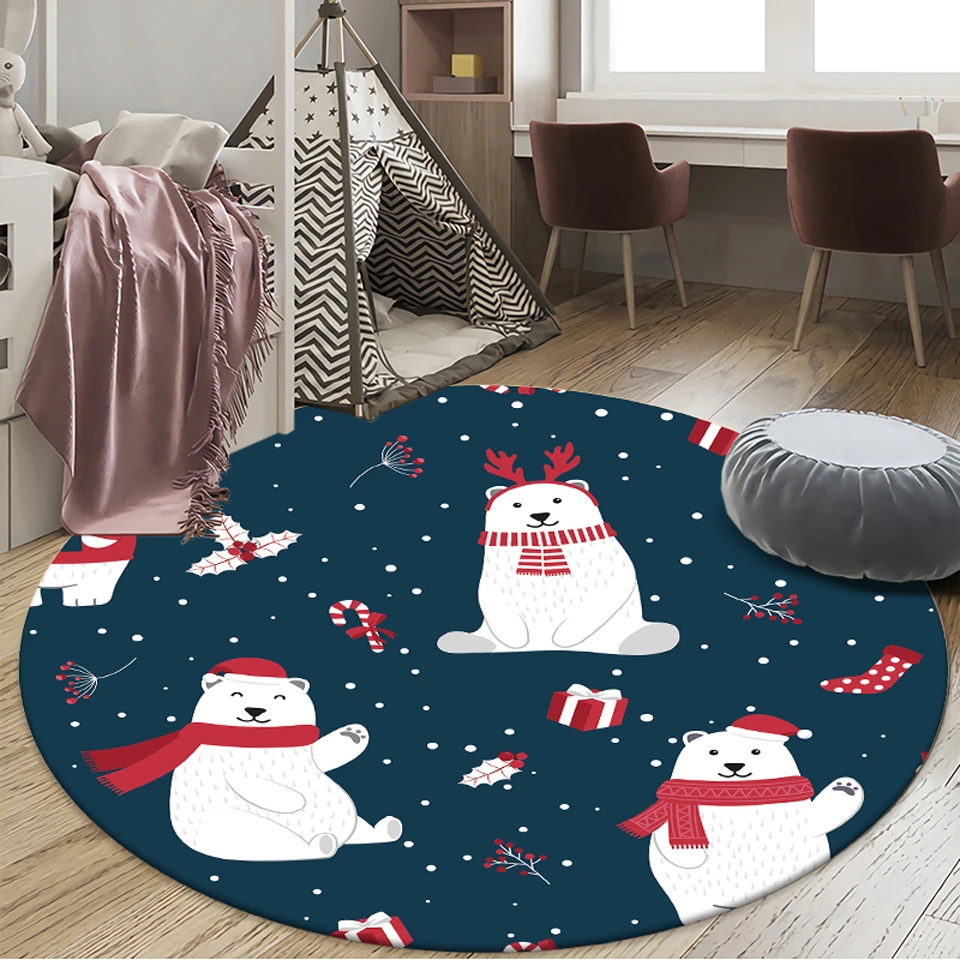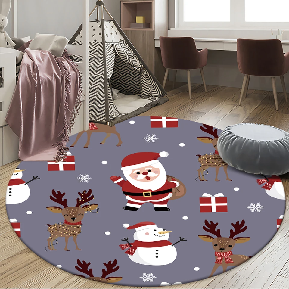 Милый рождественский коврик с героями мультфильмов, коврики для украшения вечеринки в спальне, мягкие детские круглые коврики Kawaii, нескользящий коврик для стула, защита для пола