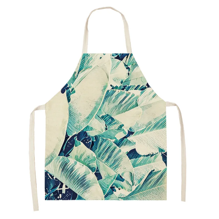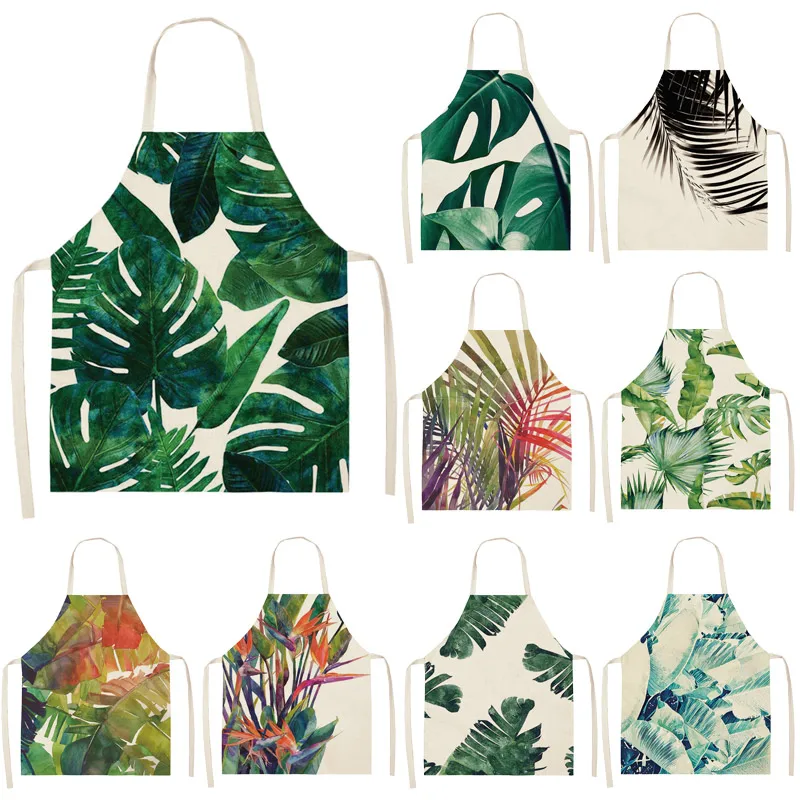 Фартуки с рисунком зеленых листьев, фартуки для уборки дома, кухни, фартуки из хлопка и льна для взрослых, Кухонные фартуки для женщин и мужчин