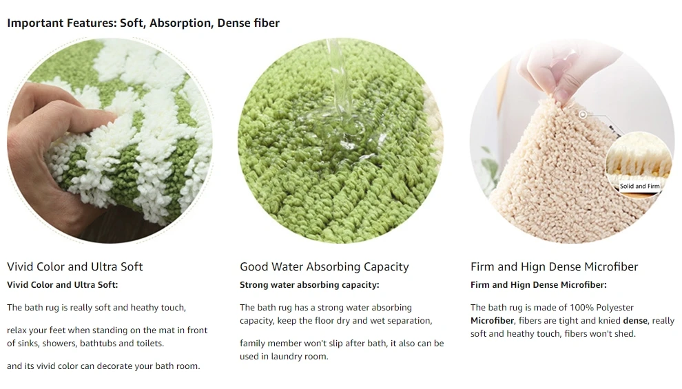 Флокирующий коврик для ванной с зелеными листьями, Нескользящий Впи...