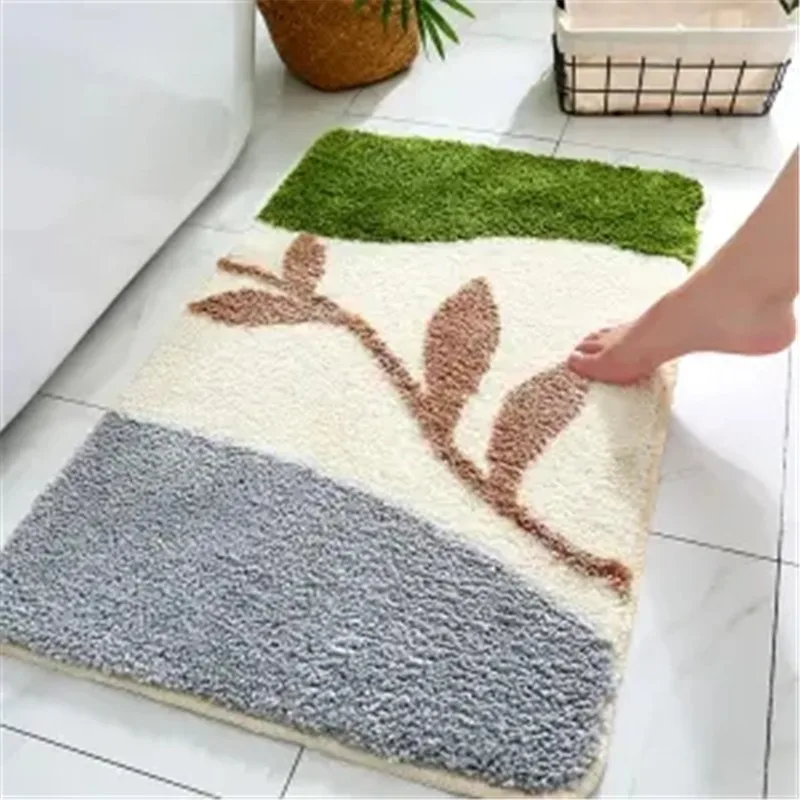 Простой флокирующий коврик для ванной YIMIN с принтом зеленых листь...