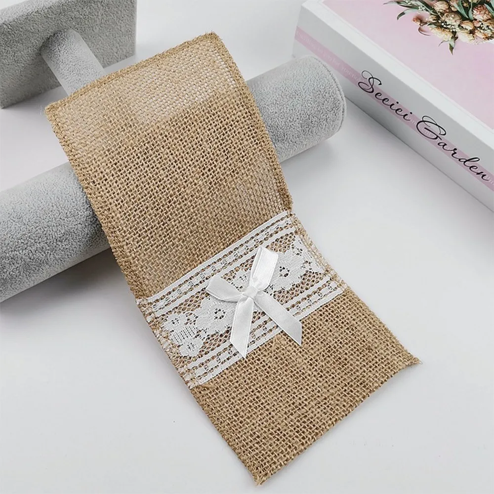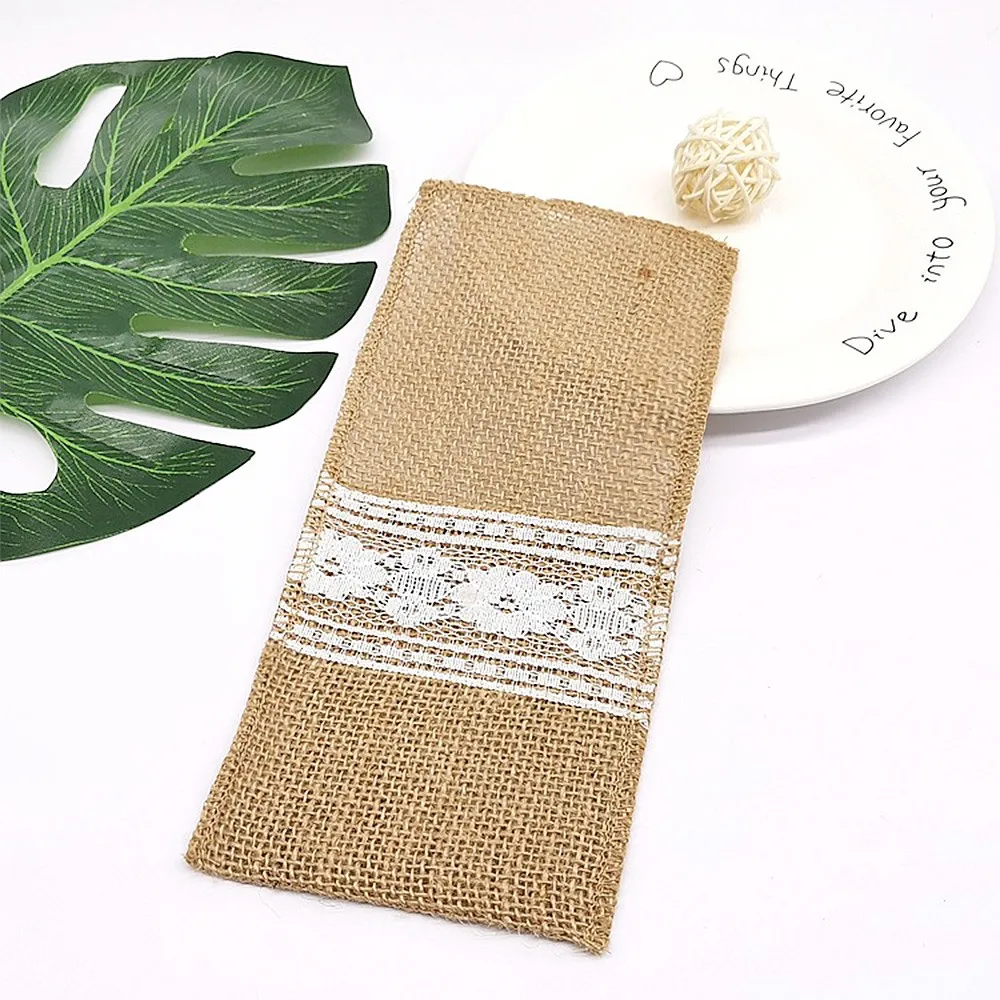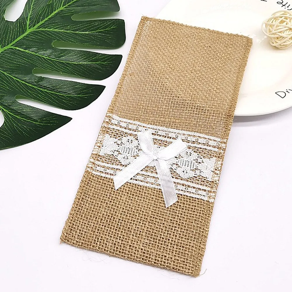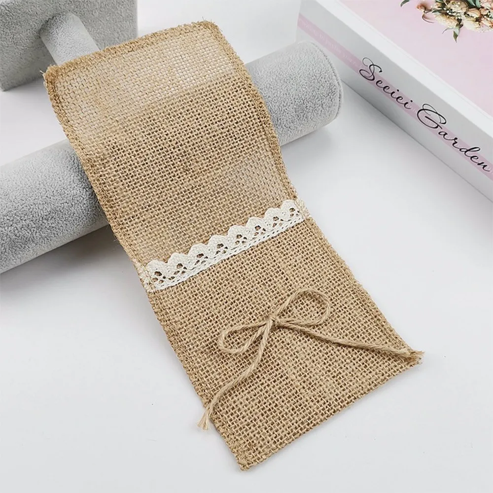 10 шт.компл. джутовое кружево сумка для посуды вилка и Ножи держате...