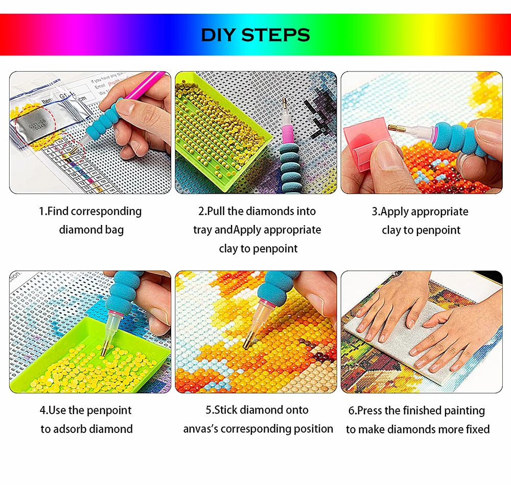 DIY алмазная живопись этапы производства:A. Откройте коробку/мешок и проверьте алмазные инструменты.B. Посмотрите цвет алмазов из смолы, упорядоченный в порядке кодирования.C. Раскройте чертеж ленты выше, вы увидите множество символов, соответствующих цветовому кодированию.D. В соответствии с соответствующим цветовым кодом зажим соответствующие смолы инкрустированные алмазы.Е. Предположили, что один тип алмаза из смолы завершился быстрее.F. Для того, чтобы создать идеальную картину с бриллиантами, рисунки, размещенные в одном месте, каждый ряд символов не должны оставаться застревающими алмазами.G. Чтобы разрезать хорошую фигуру на чертежах, удерживайте рассортированный массив, установленный на плоскости материала выше.H. Соединения должны быть ровными против аккуратных, не имеют трещин.I. После хорошей борьбы, остальная часть зазора на Клее соответствует символам алмазов.J. Для завершения хорошего алмазного рисунка поместите его в Ваш Выбор подходящей основы.Флуоресцентный