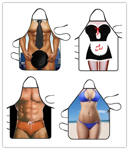Забавные мускулистые мужские 3D Кухонные фартуки цифровая печать пикантные обнаженные мужские фартуки с узором для ужина барбекю фартуки для женщин мужчин