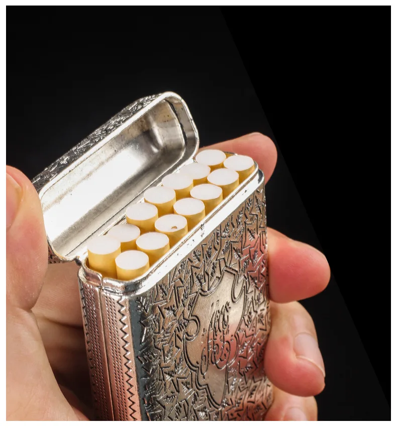 Роскошный Классический чехол для сигарет в европейском стиле, чехол для сигарет из серебряного сплава с резным рисунком, мужской фланелевый чехол с четким звуком, подарочная упаковка