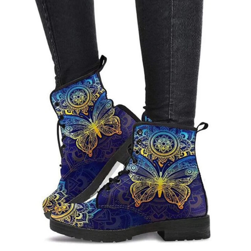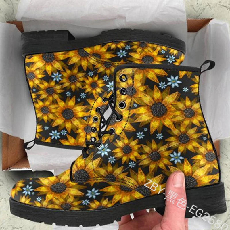 Женские ботинки, Осень-зима, новинка 2021, Британская мода, женские ботильоны для инструментов, женские ботинки из искусственной кожи с цветочным принтом, женская обувь размера плюс 46