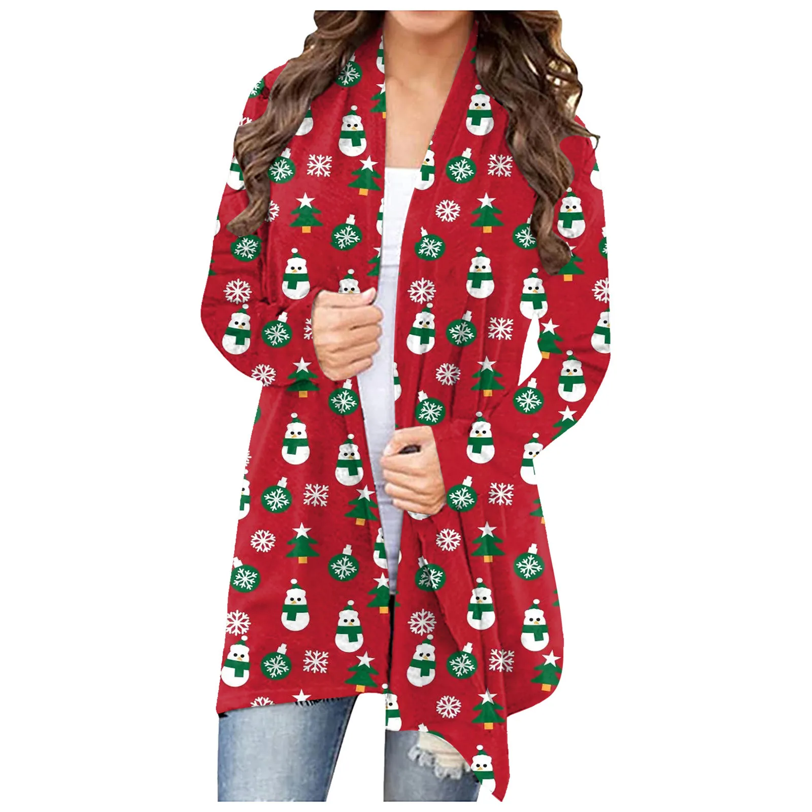 Женская рождественская куртка-Кардиган с длинным рукавом, Новый рождественский принт, Свободный Повседневный Топ