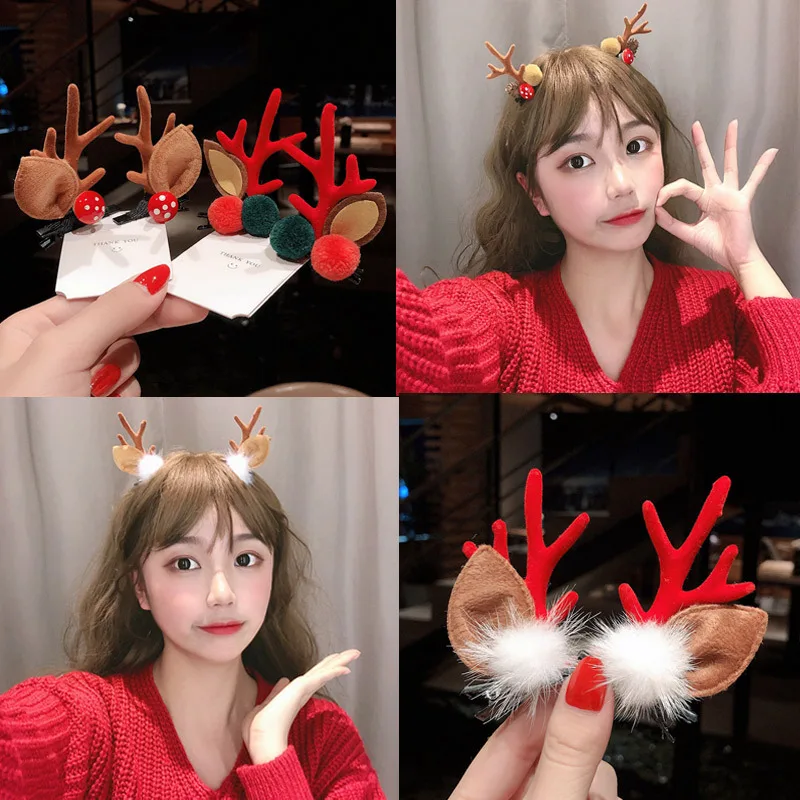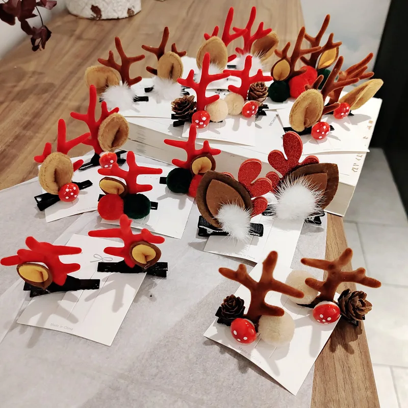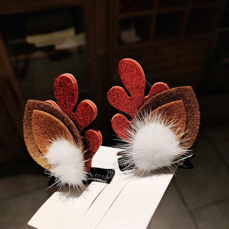 Рождественское украшение головной убор для дочери детский зажим для волос головной убор Рождественская Милая кожаная повязка заколка для волос Детские оленьи заколки для волос