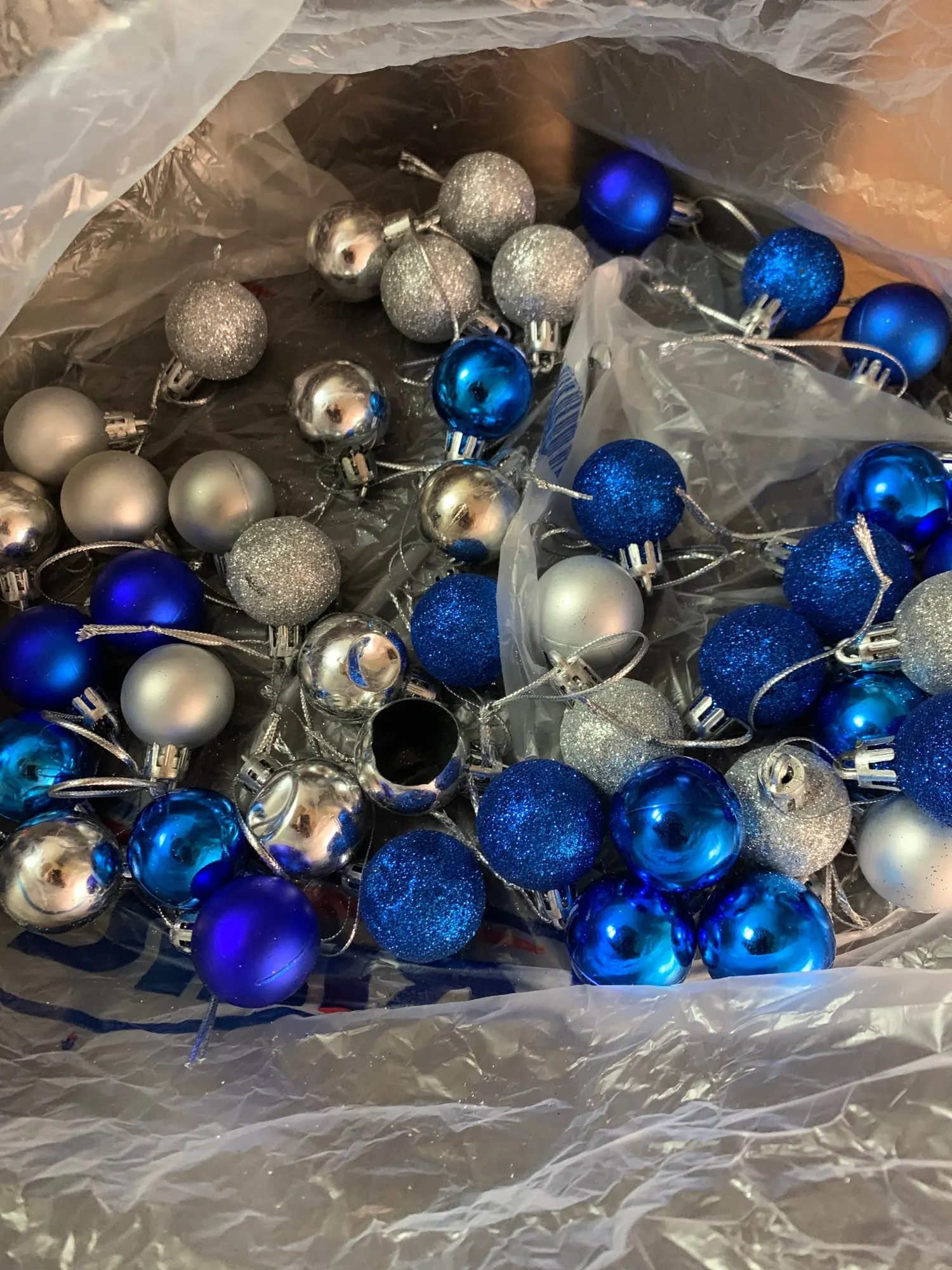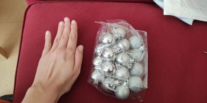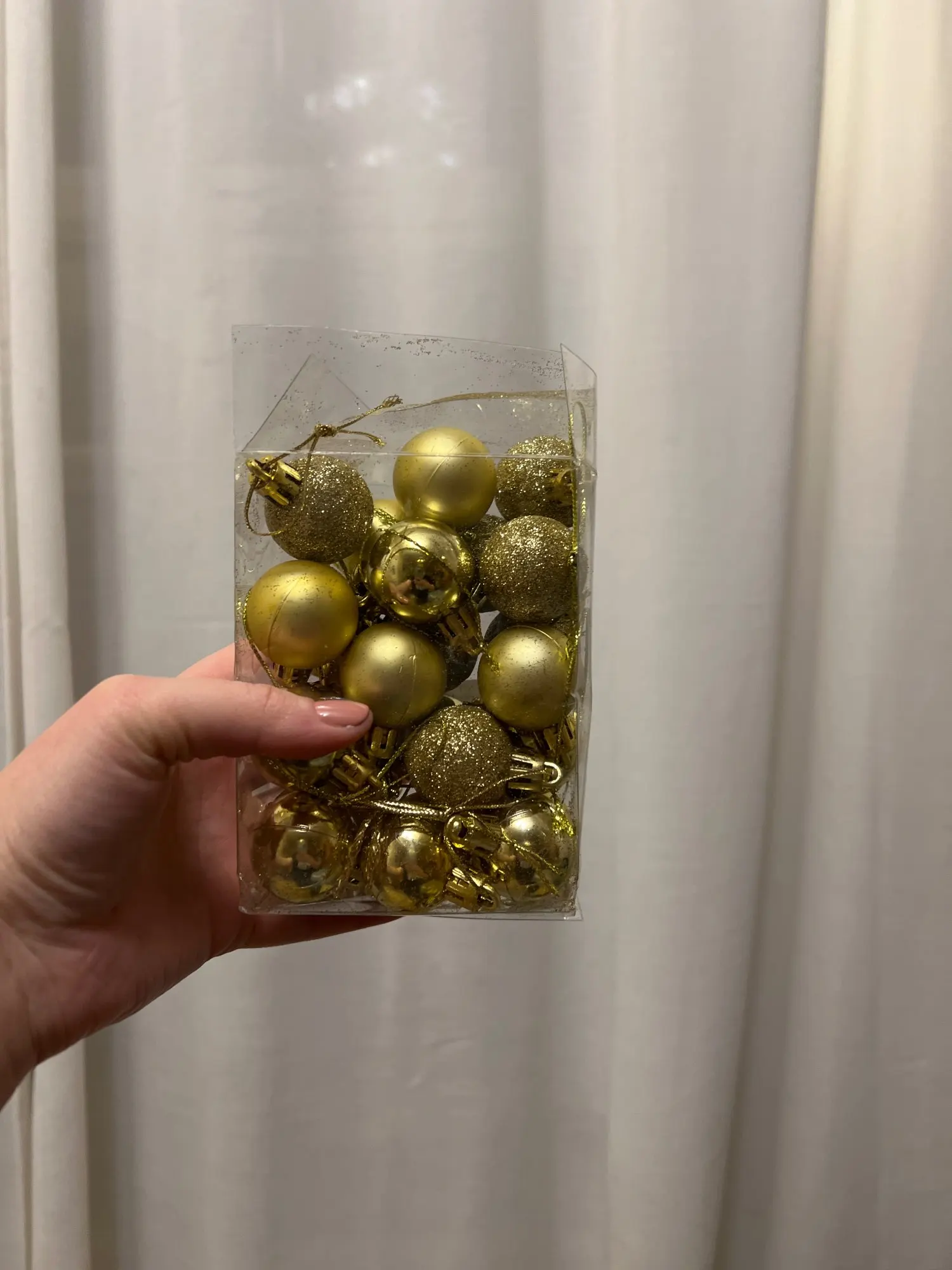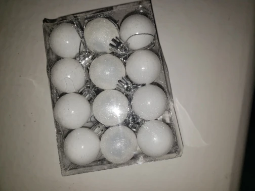 Шарики мелкие сантиметра 2 в диаметре, для детской ёлки разве что! Коробки развалились!