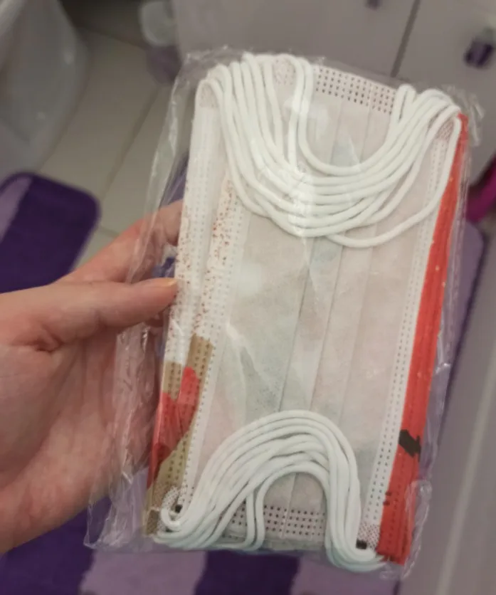 Маски класні, цупкі, не розлазяться одразу, як візьмеш в руки. Малюнок звичайно трохи не так виглядає, як на картинці, але це особливості типографії через складки на масці. Рекомендую, новорічний настрій з ними гарантовано!