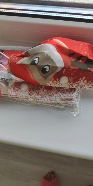 прекрасные масочки. сразу новогоднее настроение. яркие. размер позволяет носить взрослым с любой комплекцией. описание товара было подробным это помогло остановить выбор именно на этих масках. упаковка пришла целая , все маски целые, не помятые. товар пришел быстро. даже раньше срока. спасибо продавцу, порадовал !