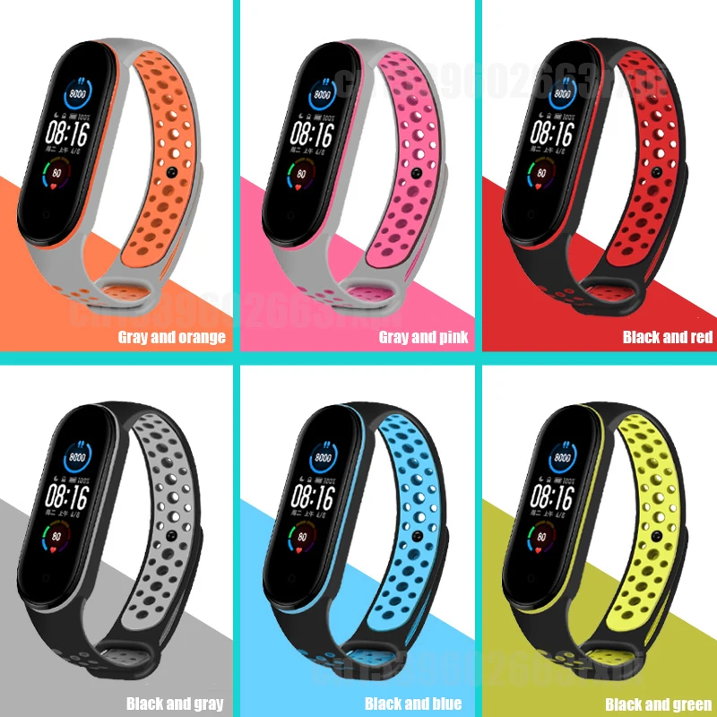 Силиконовый ремешок для Xiaomi Mi Band 5 4 3 6 пористый двухцветный...